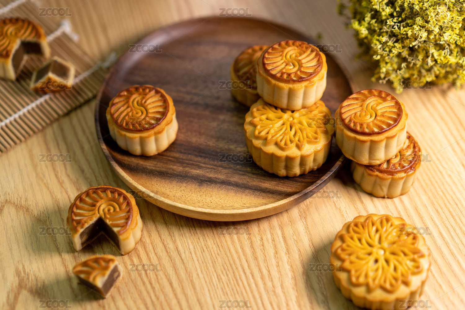 月饼与木质托盘