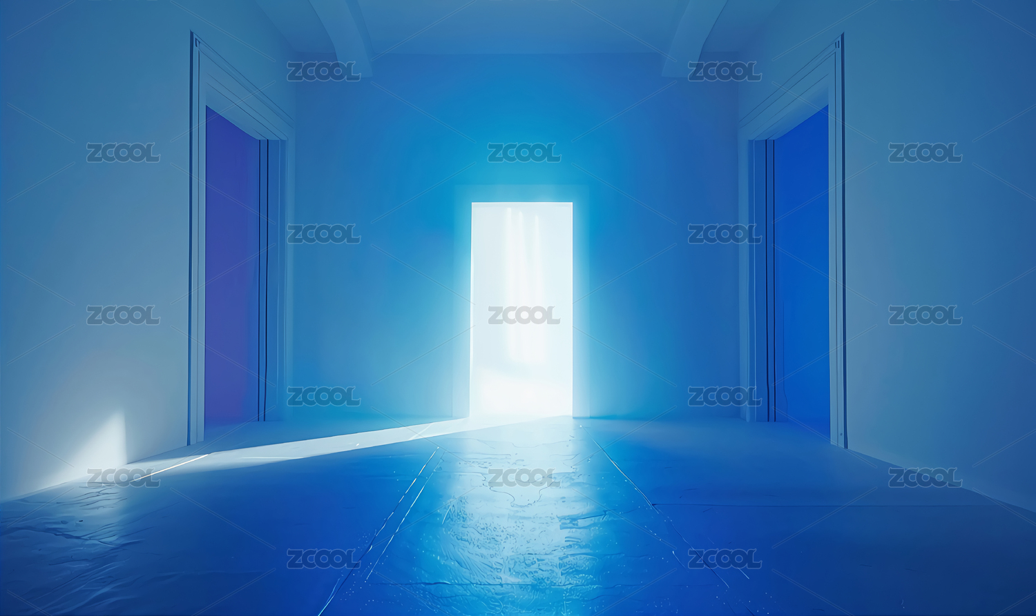 蓝色,空间,室内,光线,简洁,现代,抽象,冷色调,电光,光影