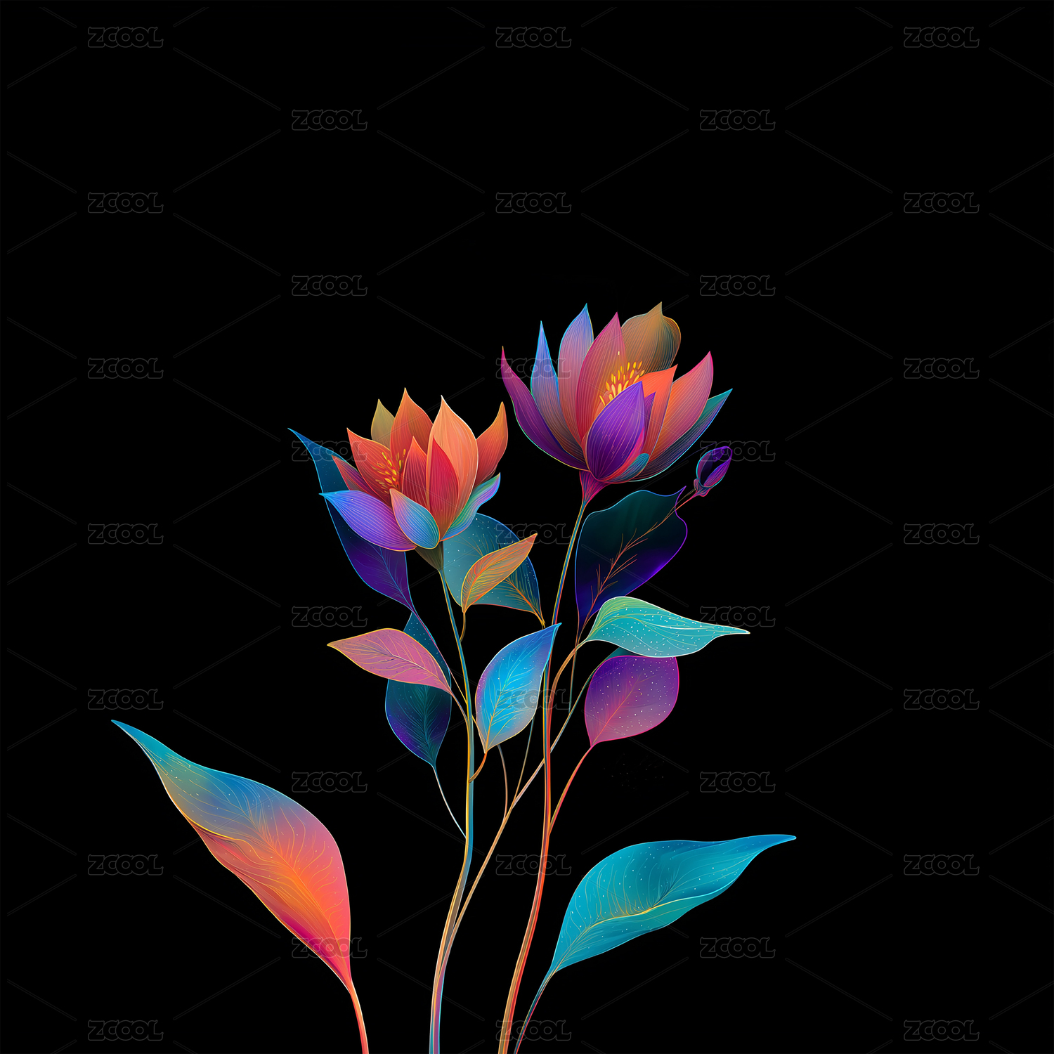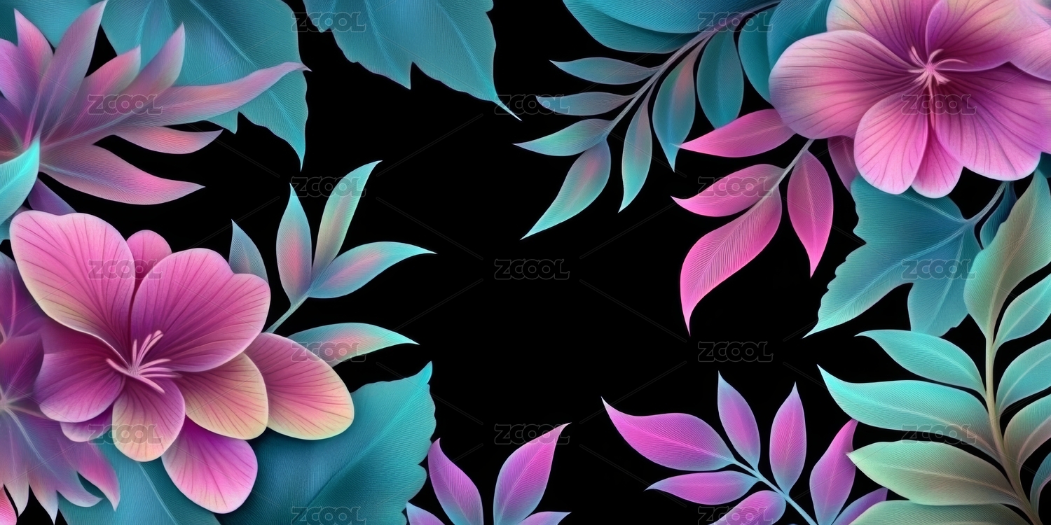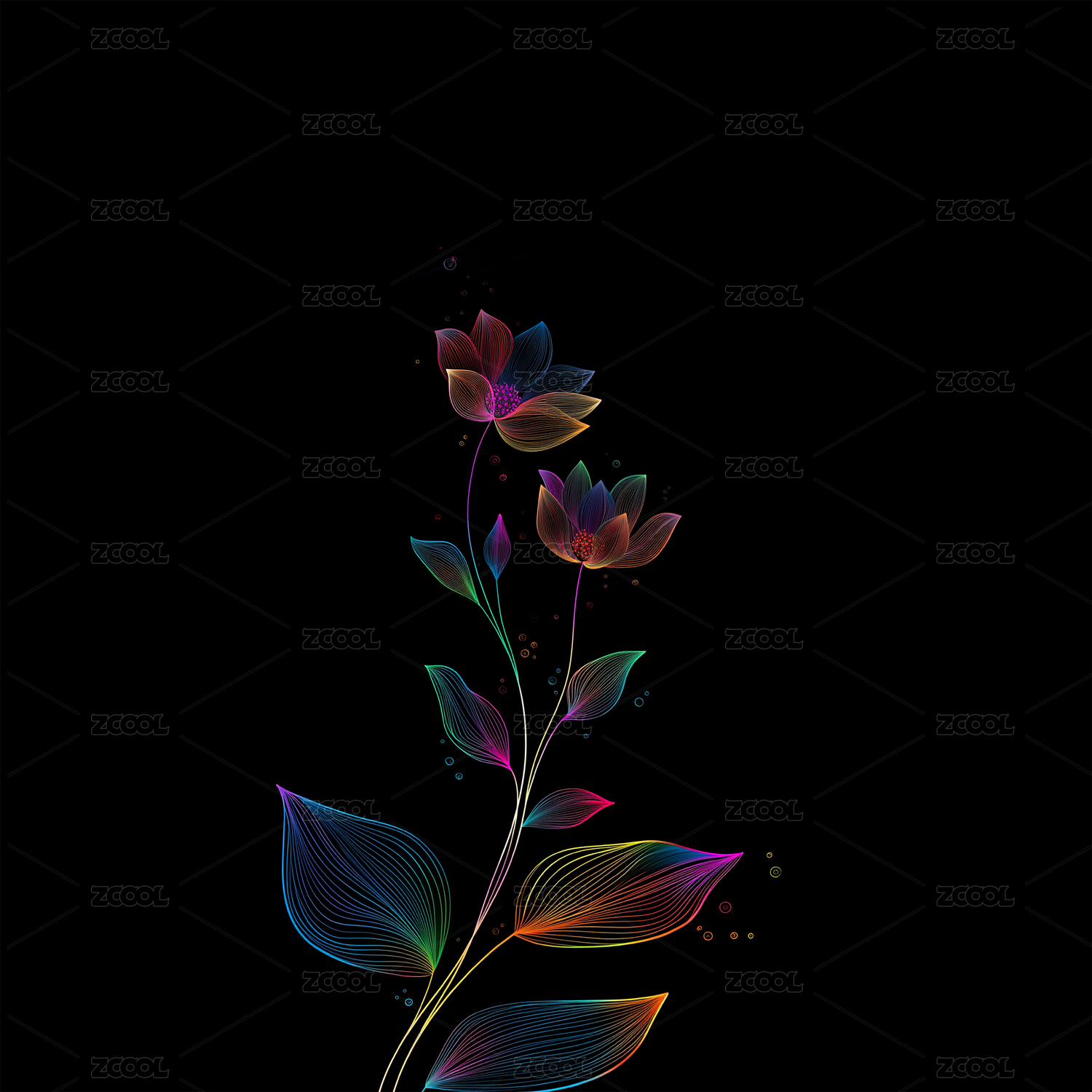 色彩花卉映衬黑色背景