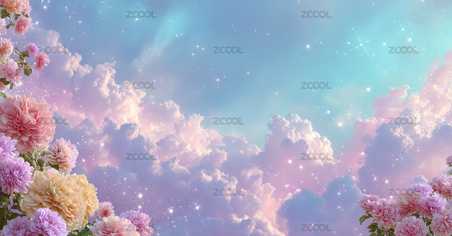 梦幻花朵与云彩天空