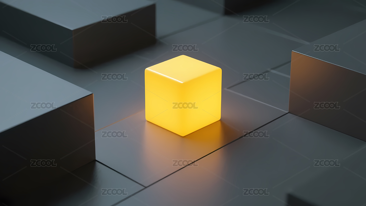 黑色方块,光影效果,立体感,几何图形,对比,突出,焦点,明亮,暗调,科技感
