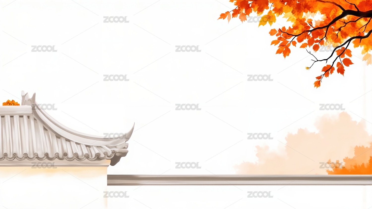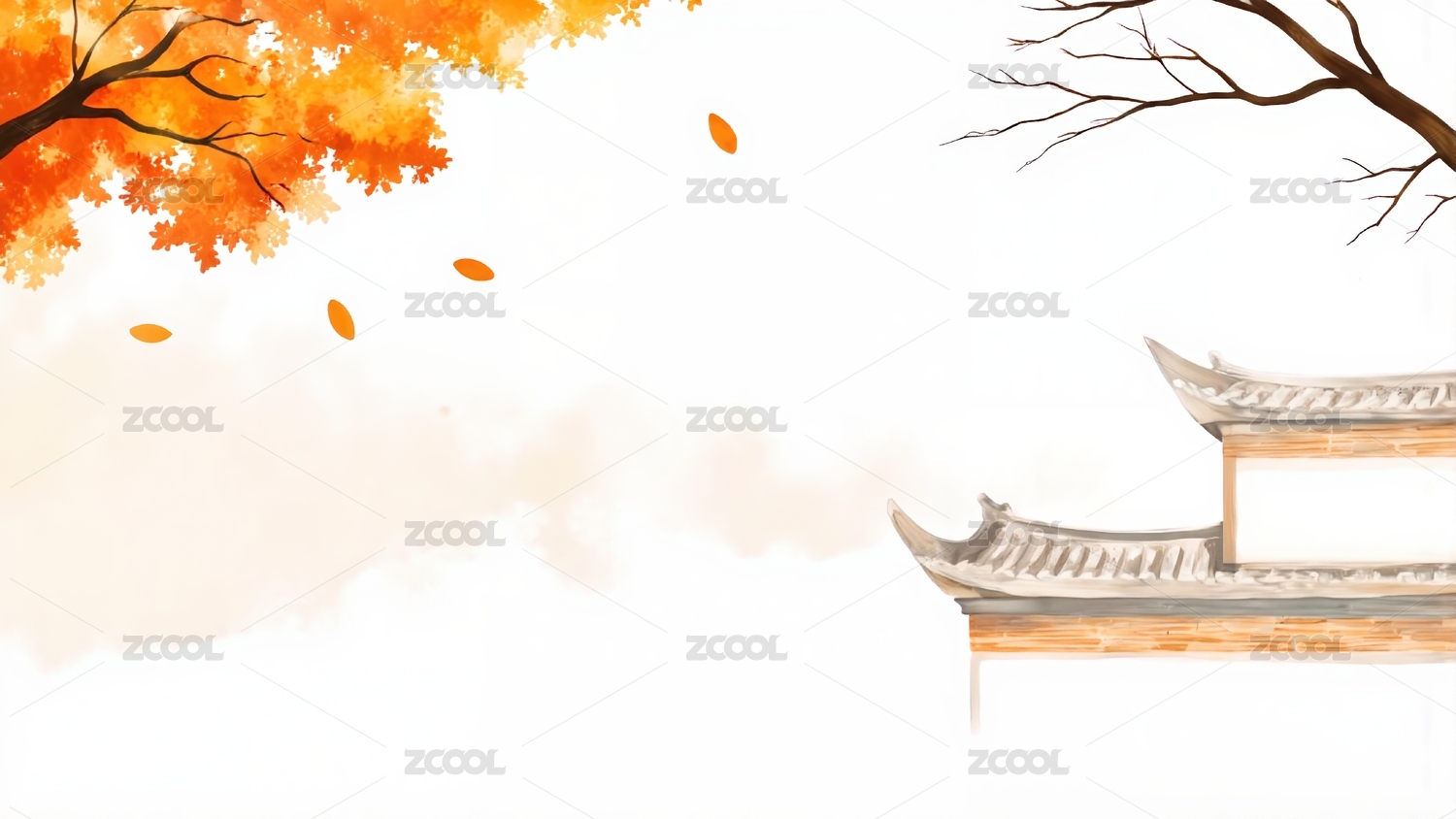 传统橘白色枫树建筑海报背景