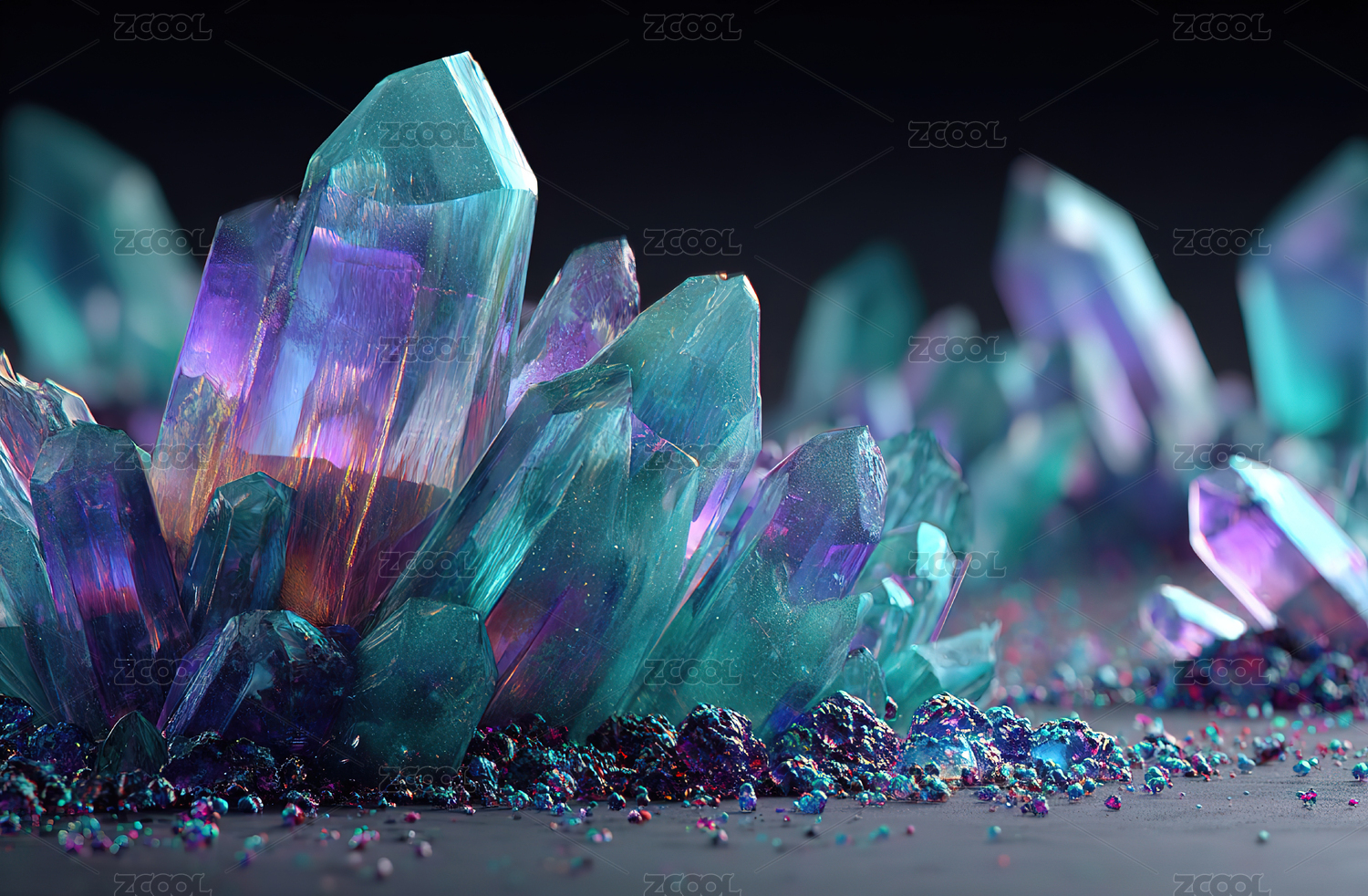 水晶,晶簇,矿物,透明,折射,光泽,粉色,蓝色,光晕,光影