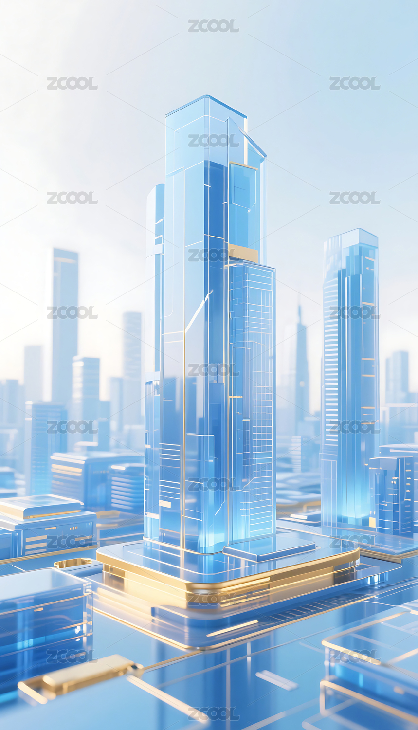 蓝金色玻璃质感光效城市建筑背景