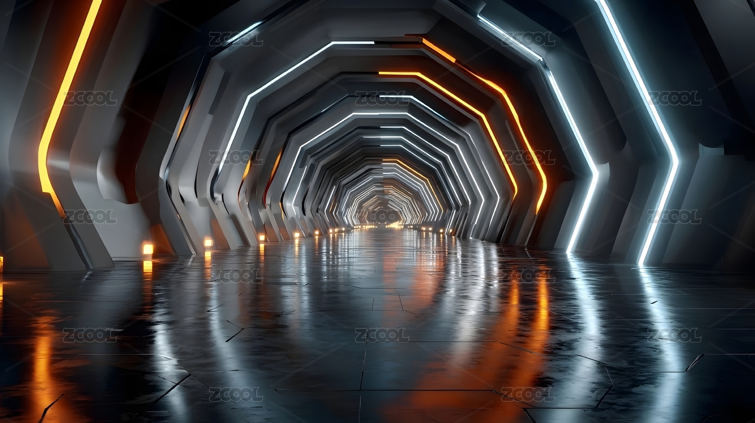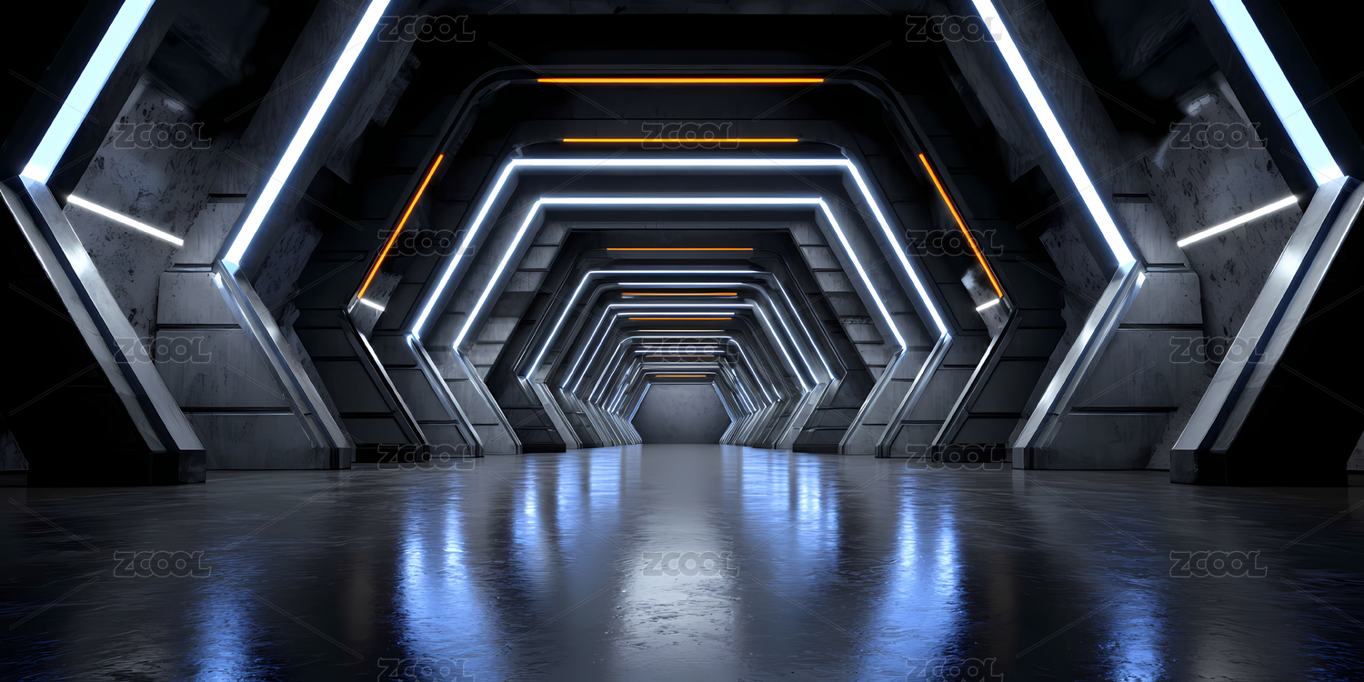 科幻隧道光影透视空间