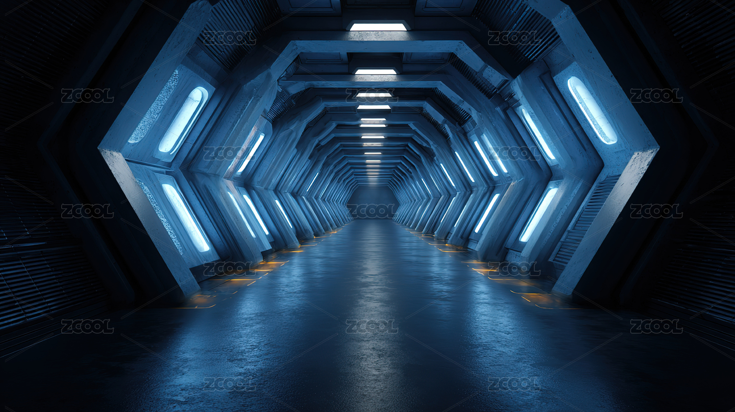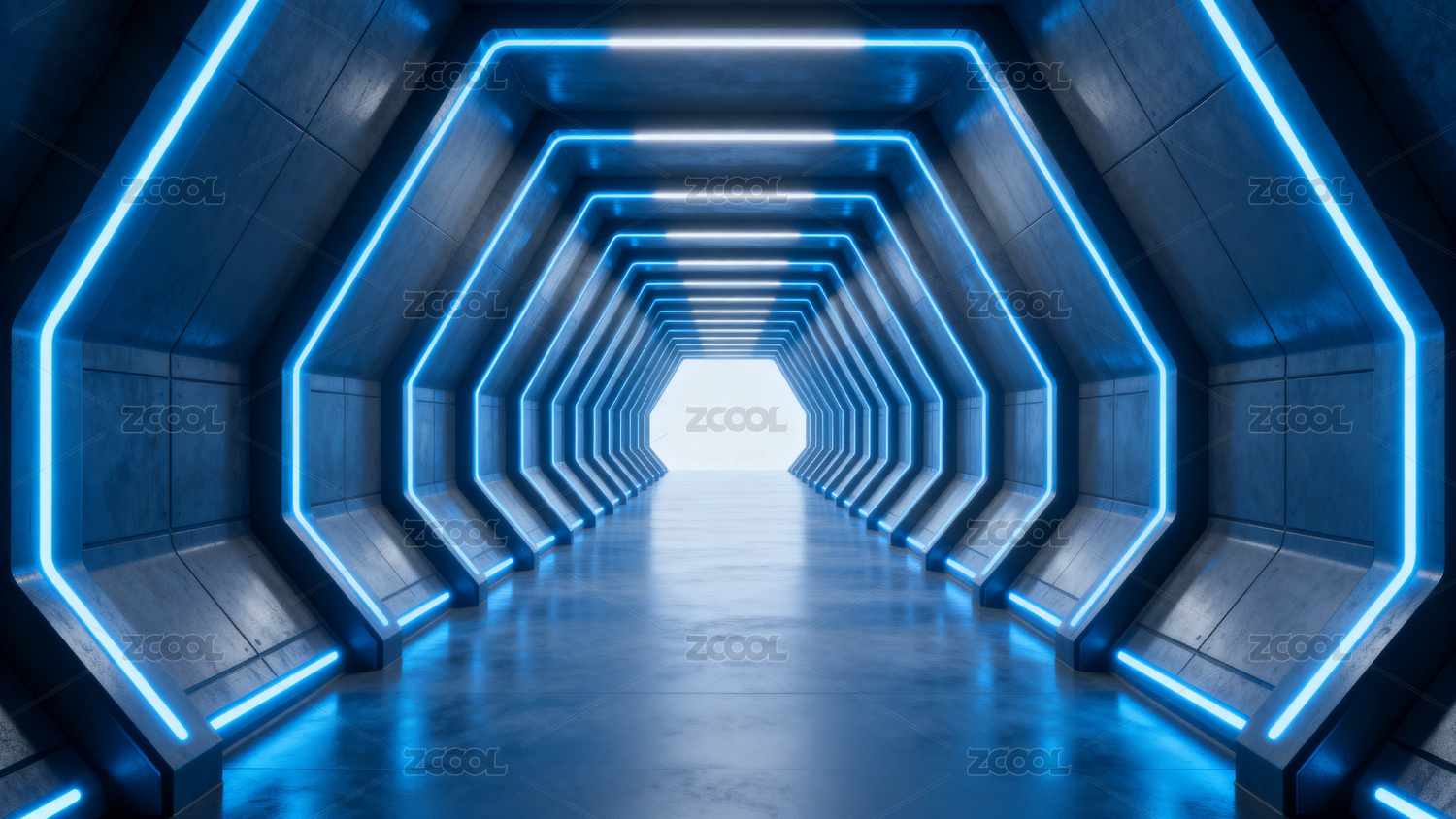 科幻风格蓝色隧道走廊