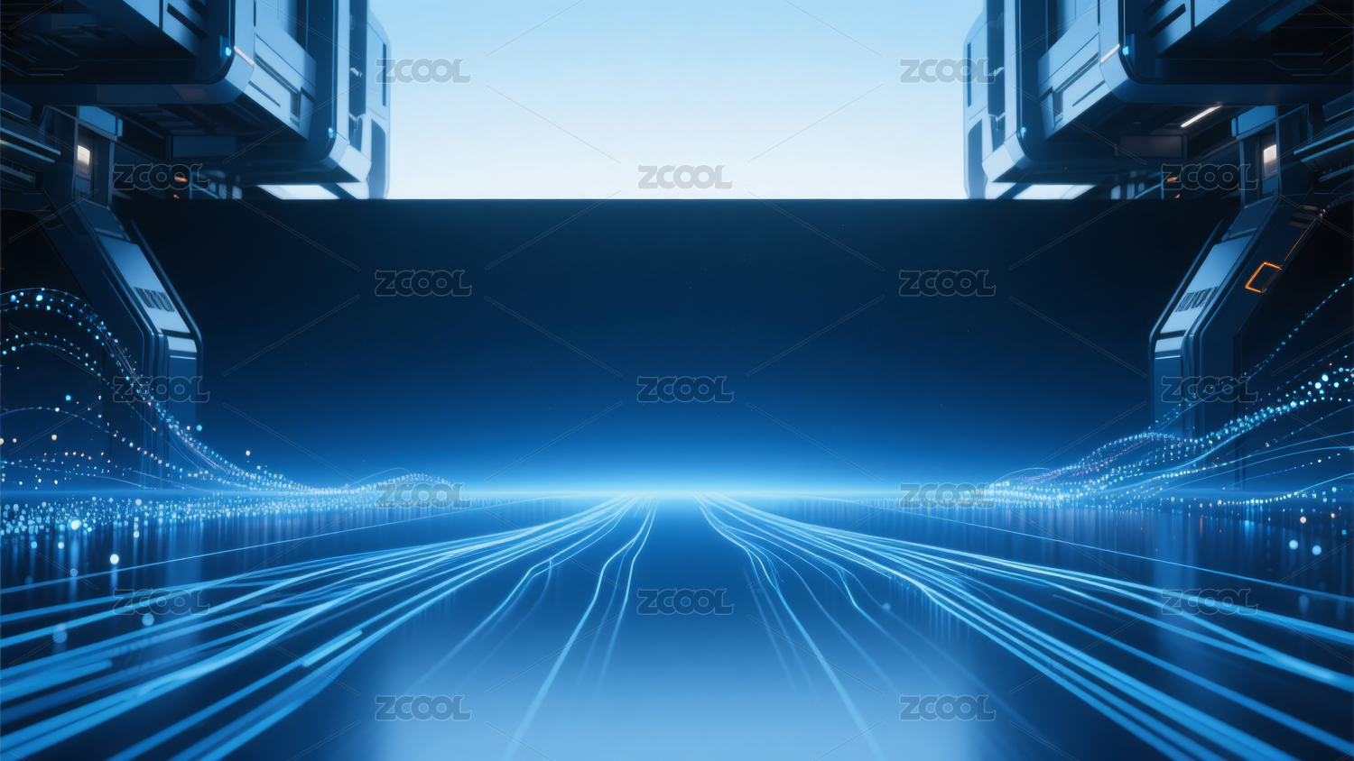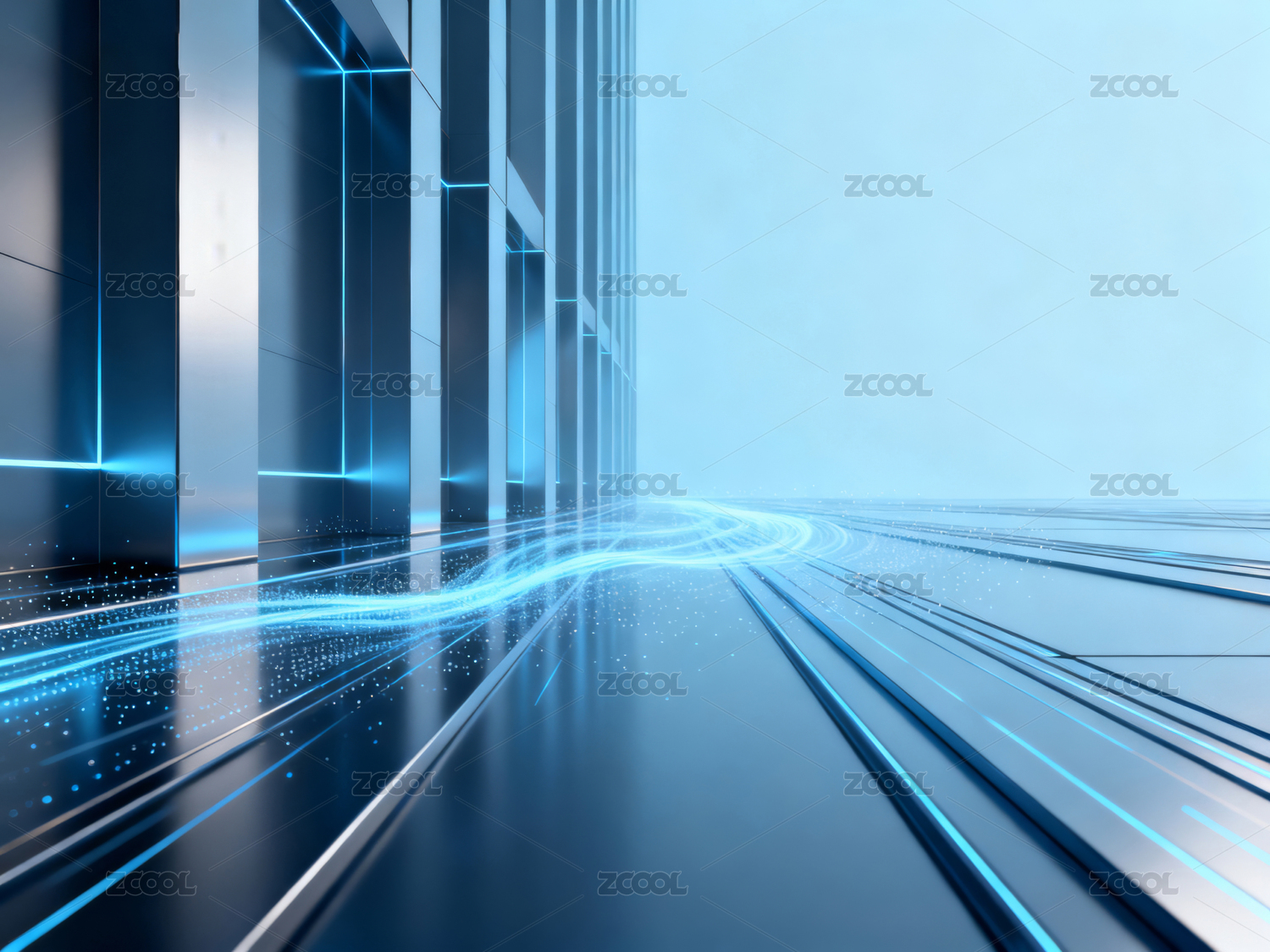 科技感,蓝色,光效,未来,建筑,数字,流动,光线,轨迹,现代