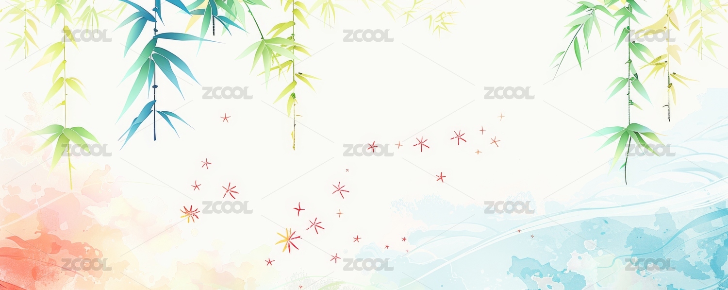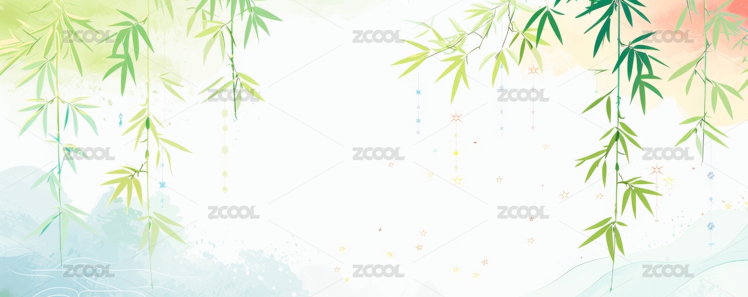 竹叶上的星星的插画背景