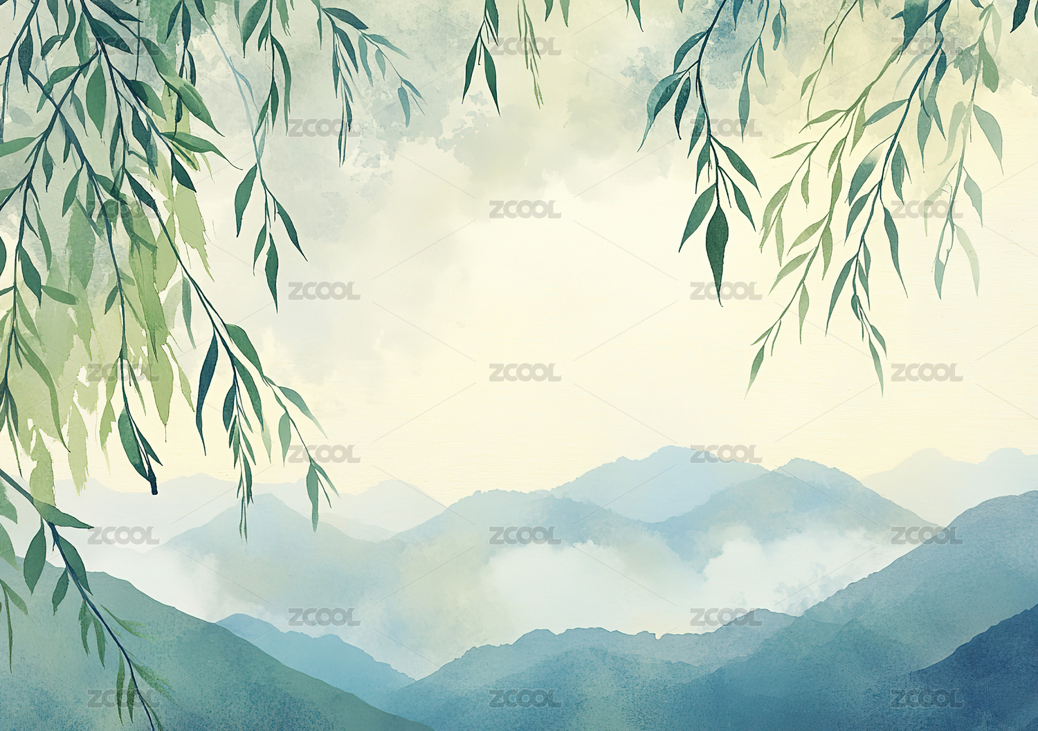 山水云雾柳枝