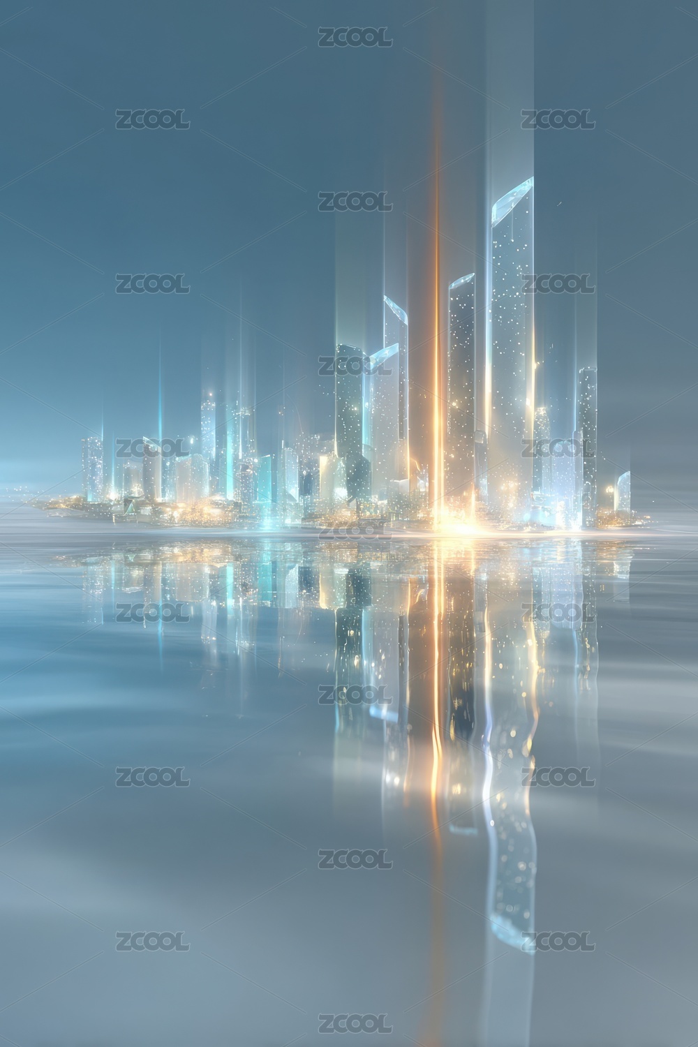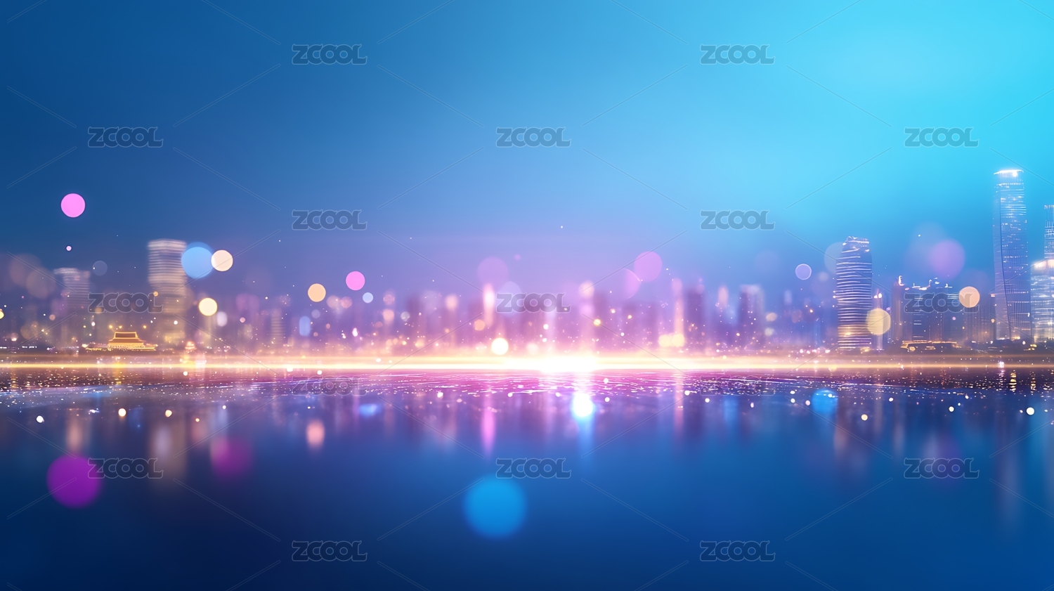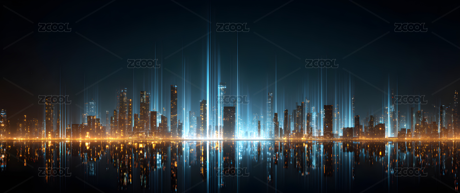 夜景城市光效倒影