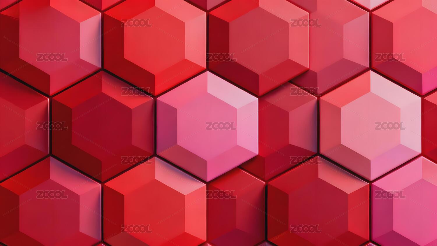红色六边形立体几何图案