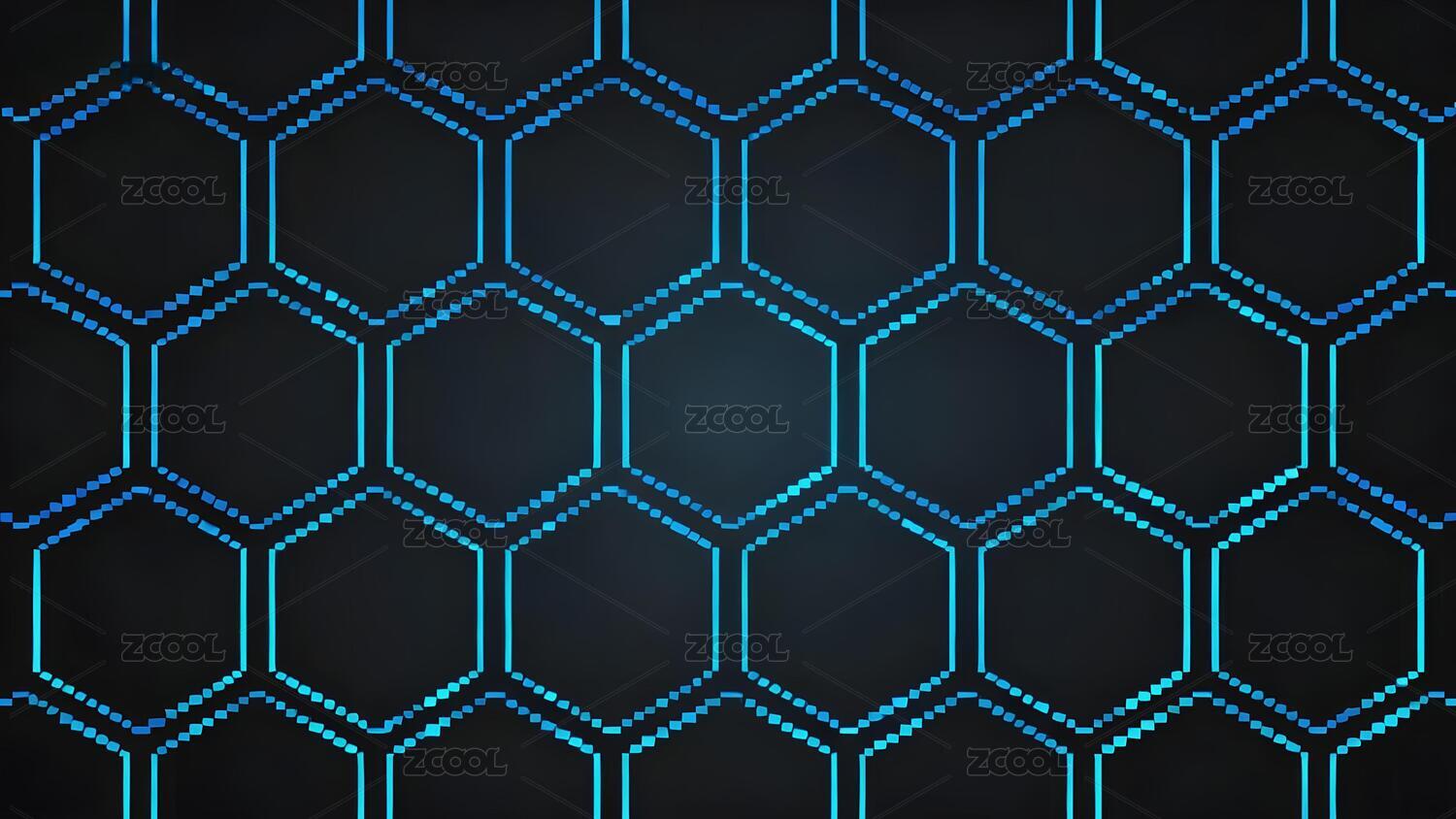 蓝色发光六边形网格图案