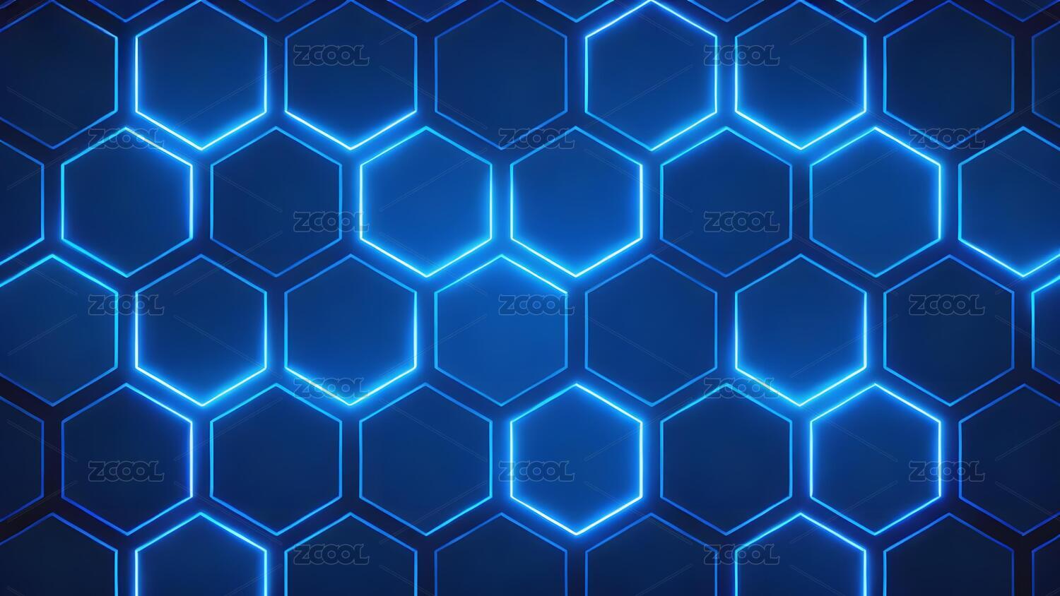 蓝色发光六边形网格背景