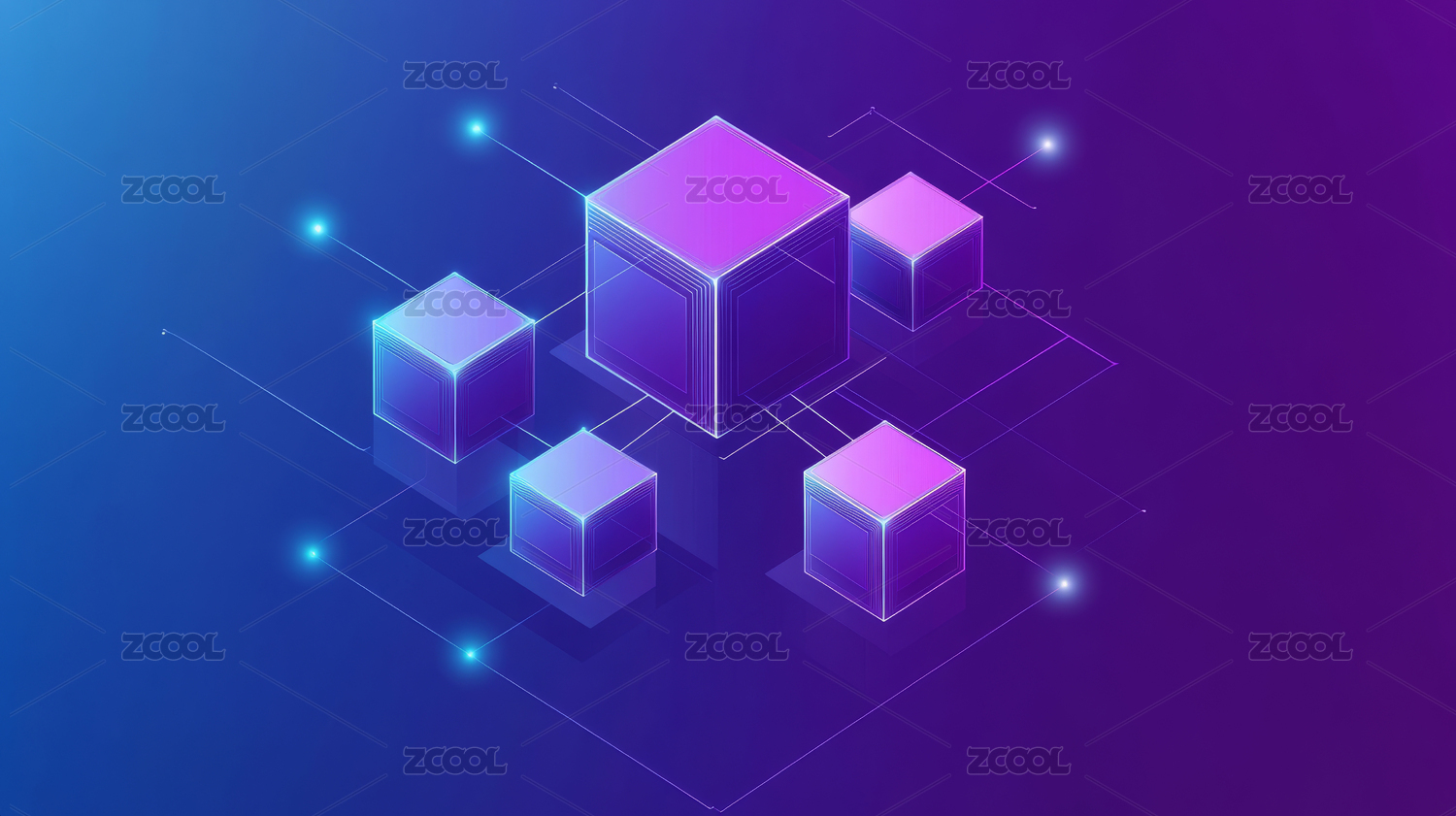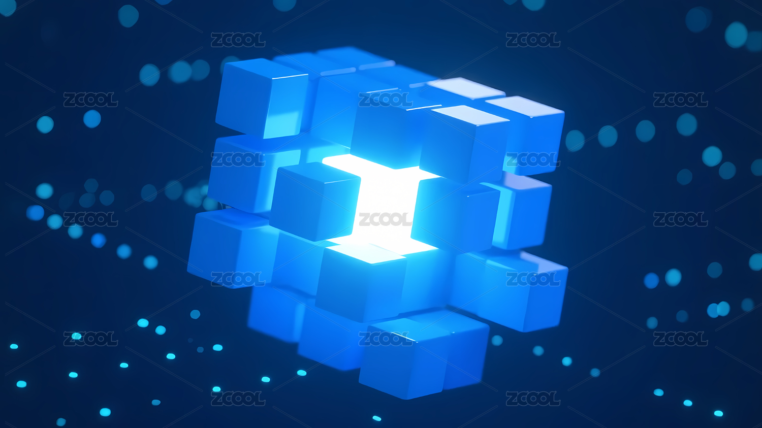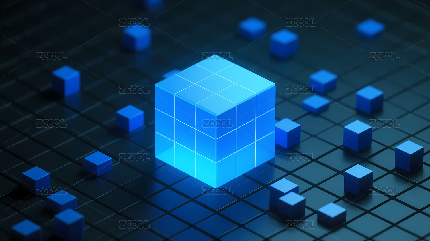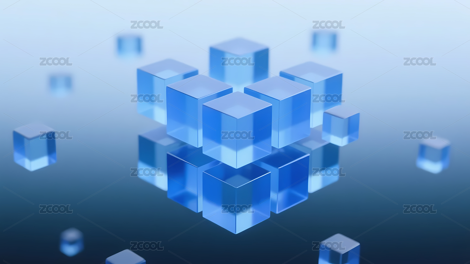 蓝色渐变炫酷方块立体几何简单背景3d渲染