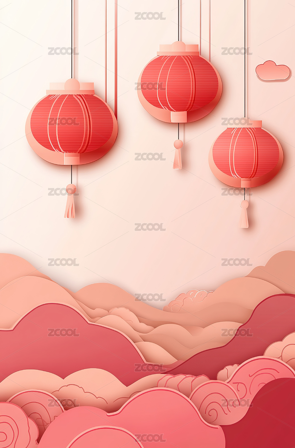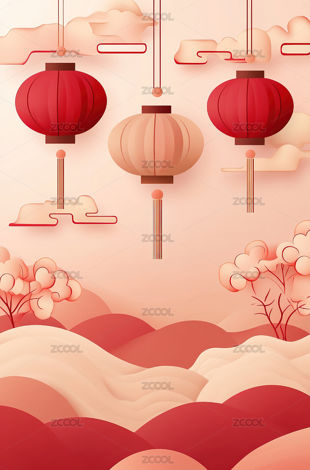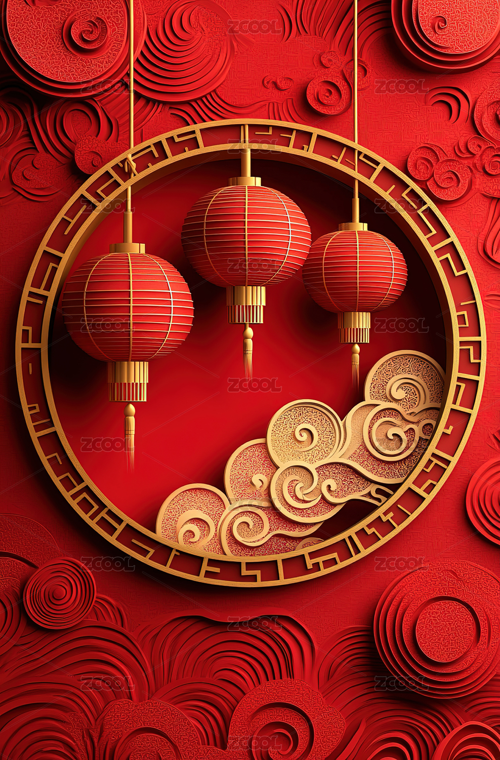 中式,祥云,传统,国风,节日,元素,红色,喜庆,灯笼,装饰