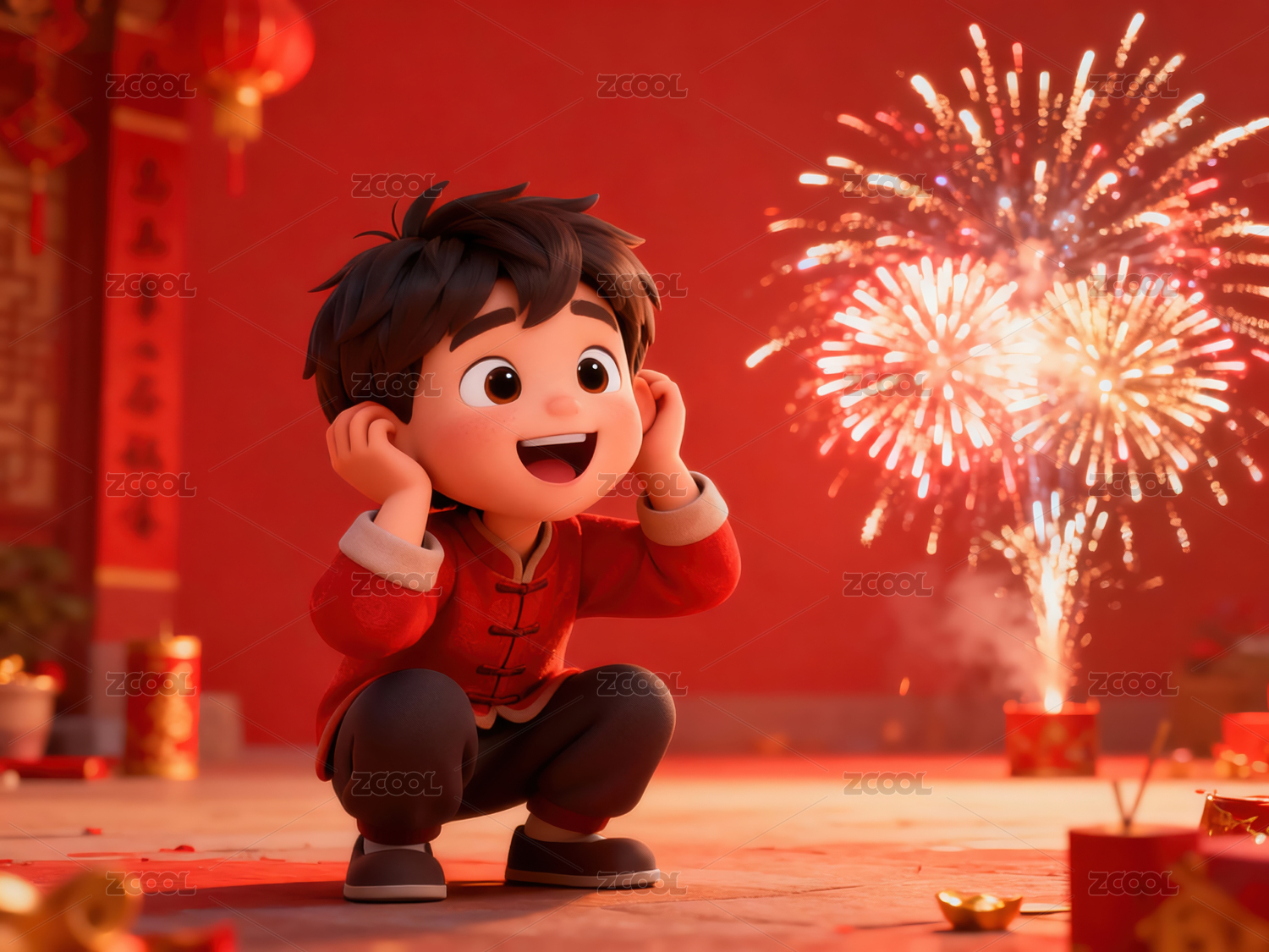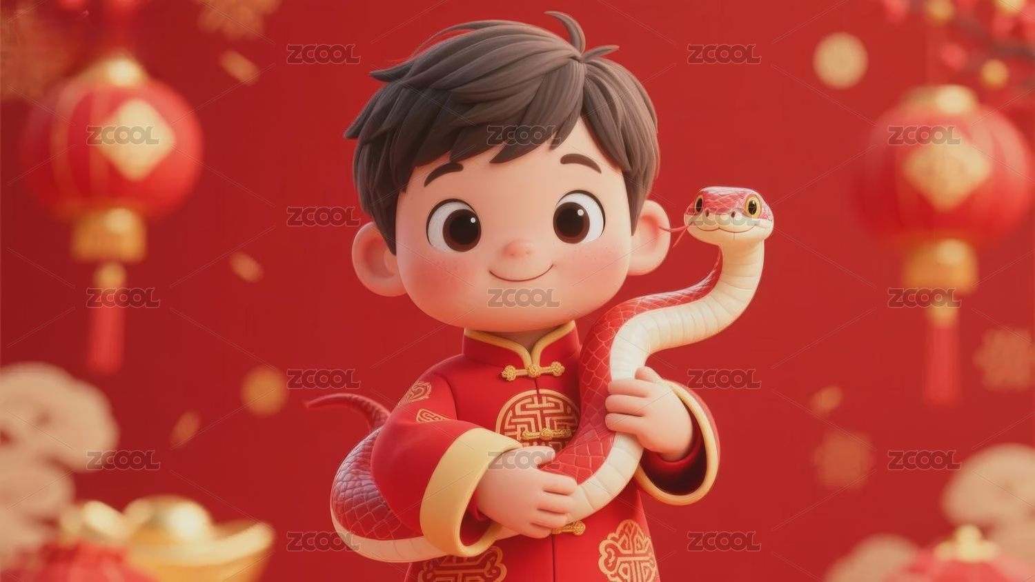 3d卡通插画手捧金元宝的红衣男孩贺新春