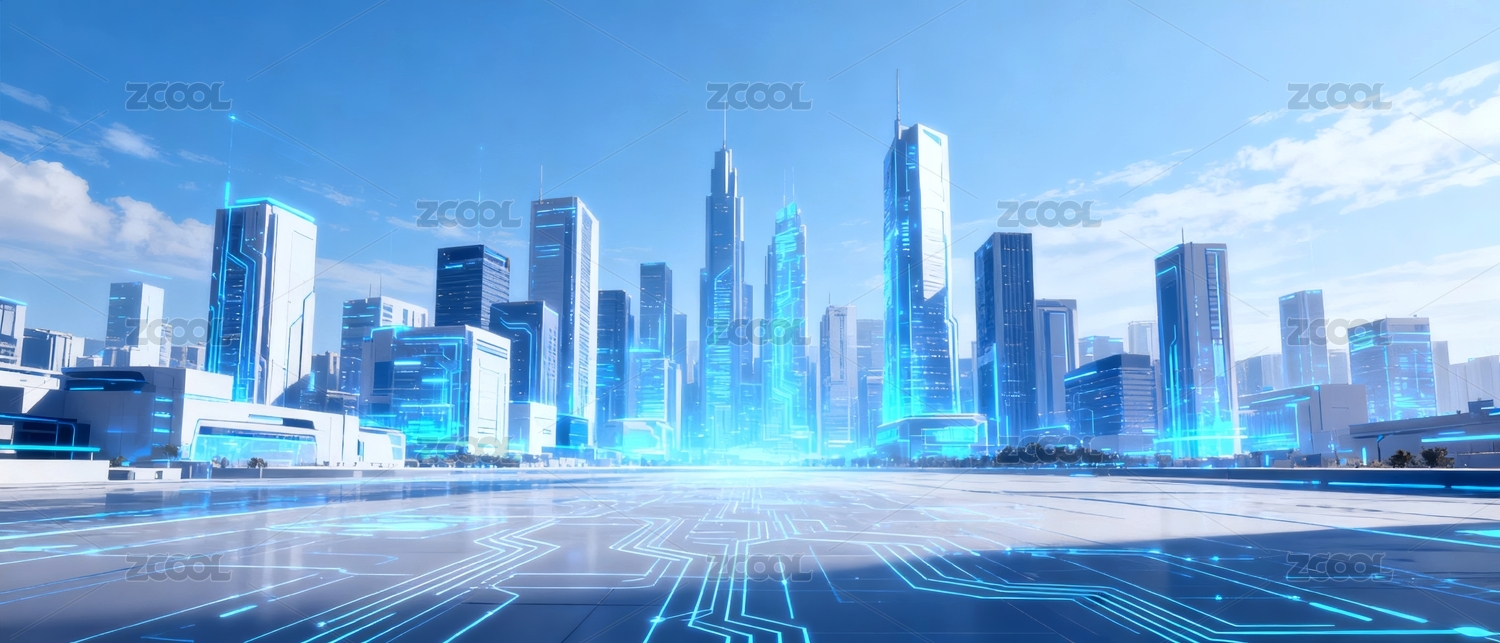 蓝色商务科技未来感光效汇聚城市建筑主视觉
