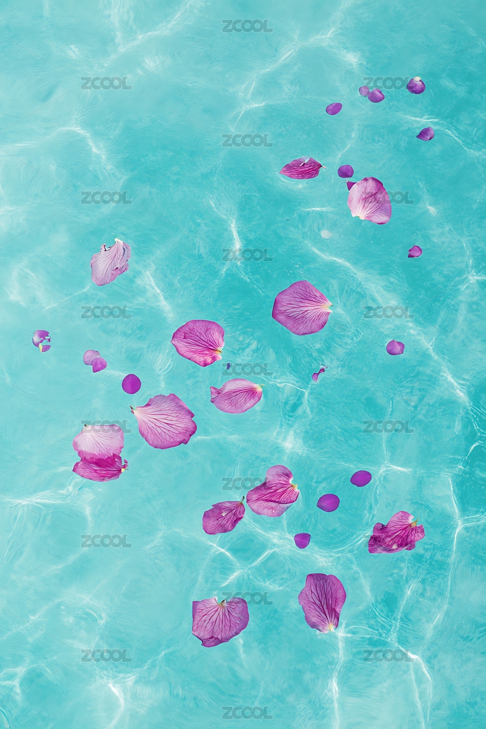 唯美,意境,蓝色,光影,粉色,浪漫,水面,柔和,透明,花瓣