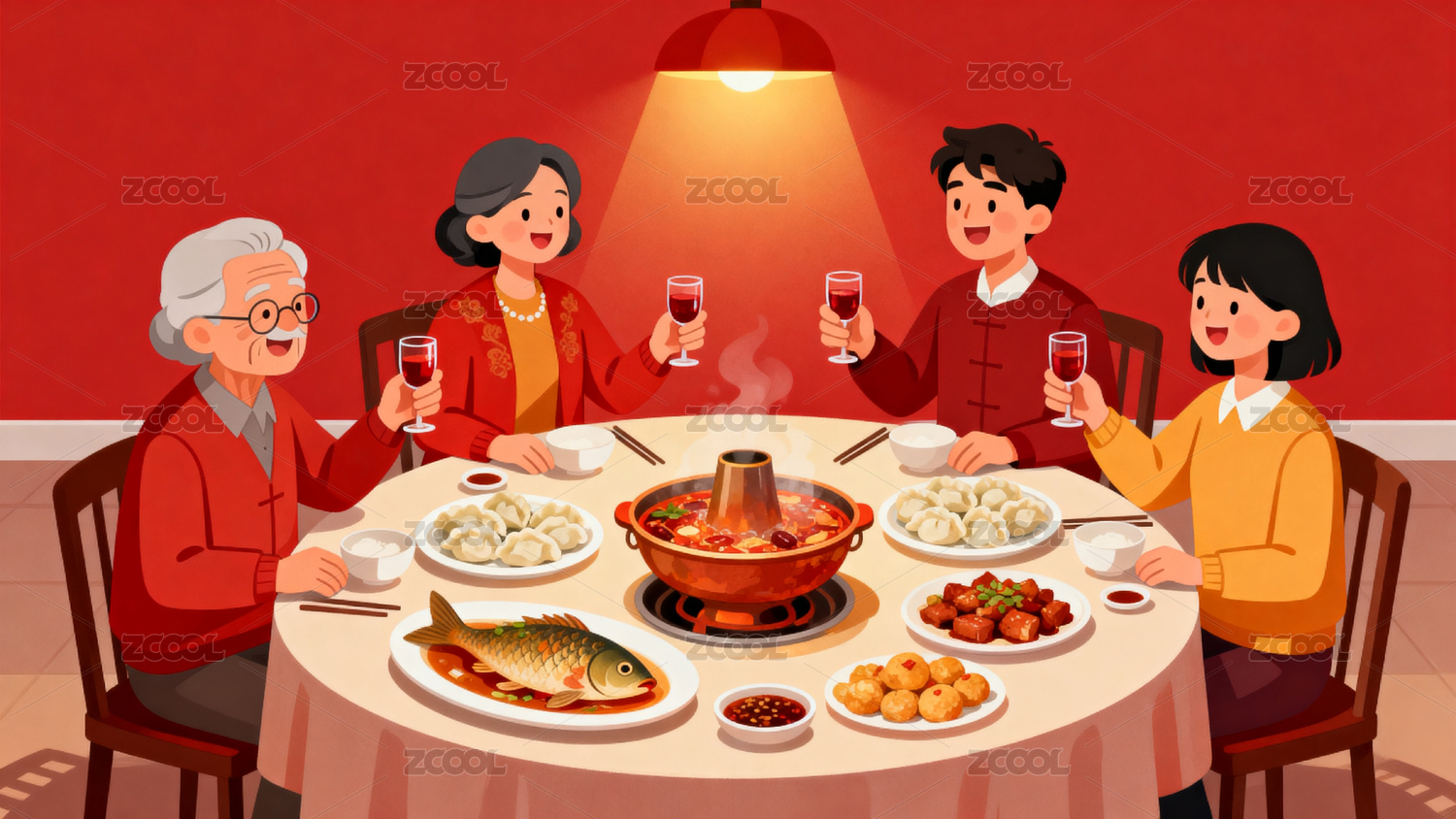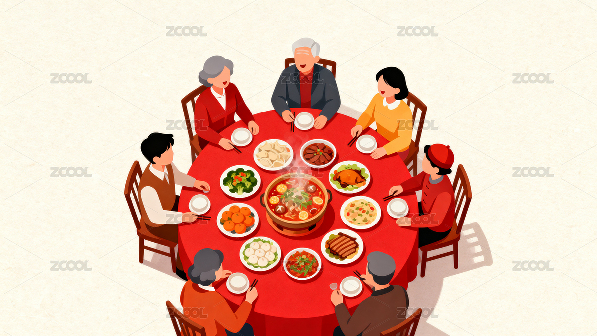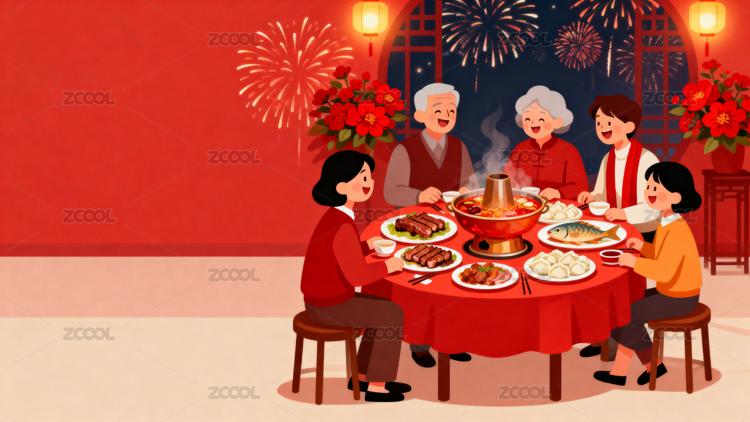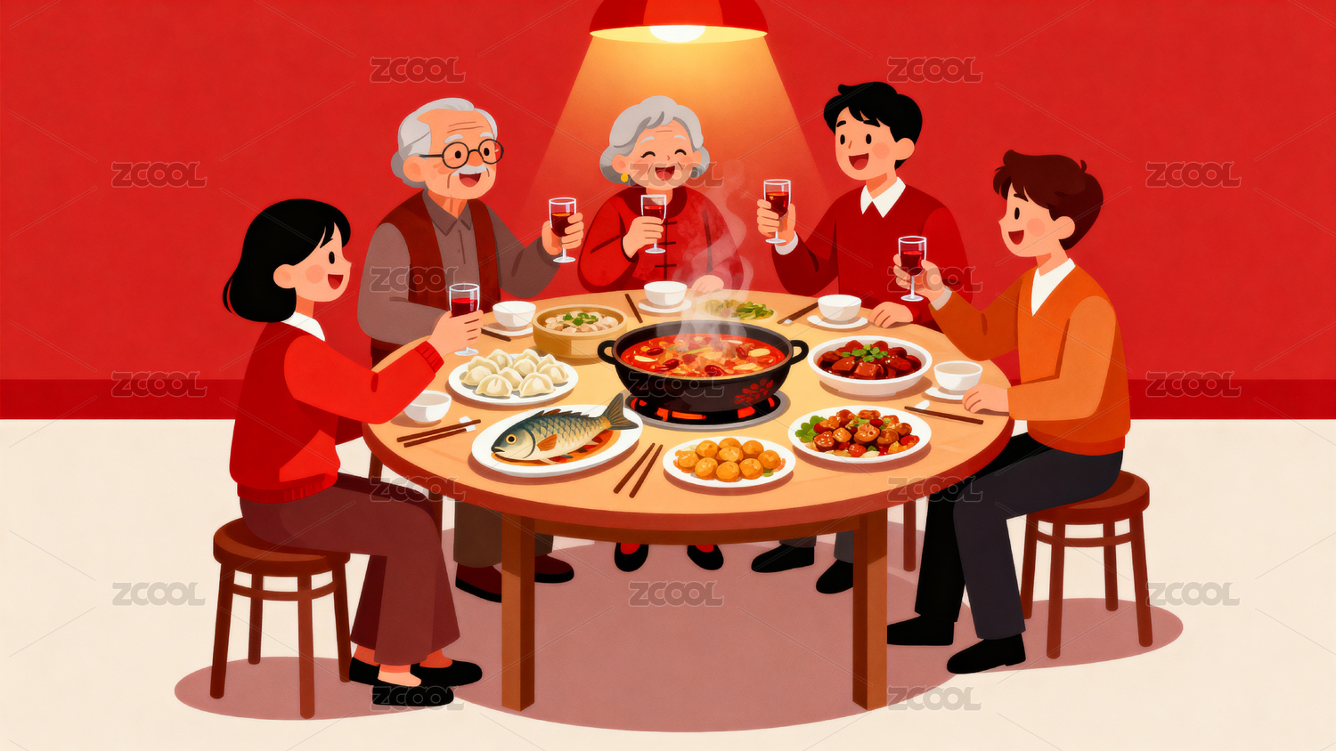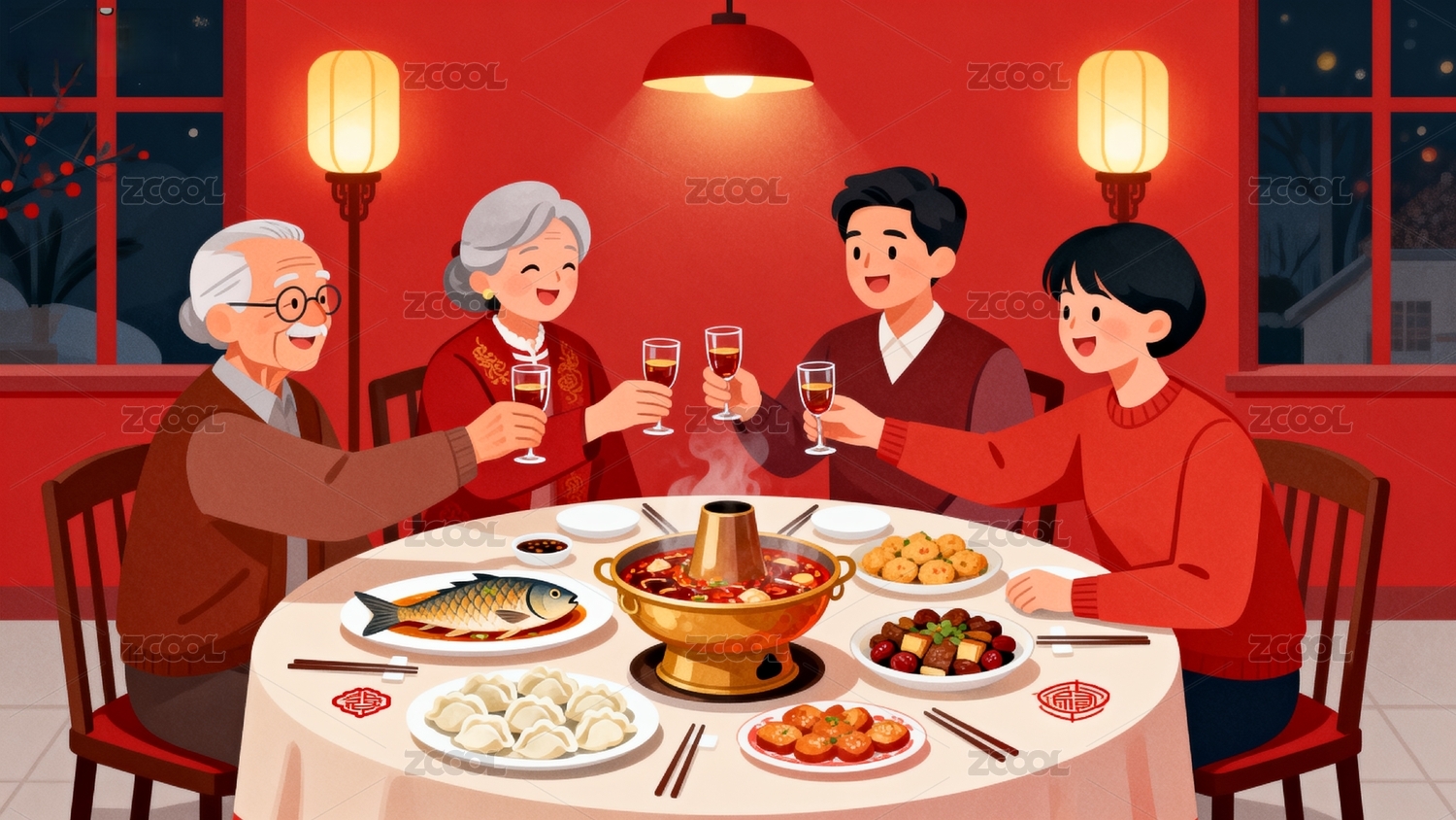 一家人一起吃年夜饭过新年迎新春一起团圆饭