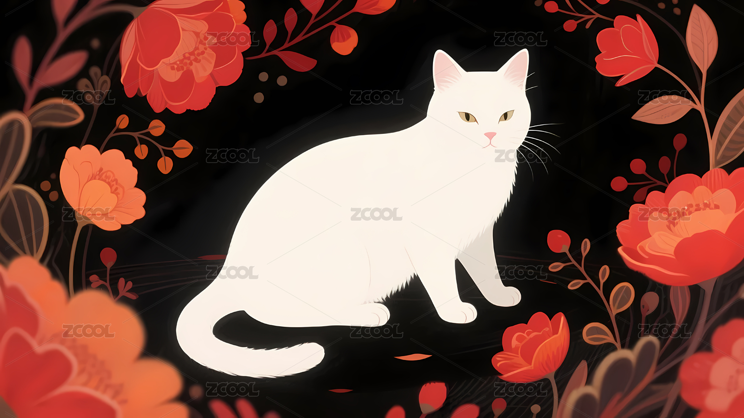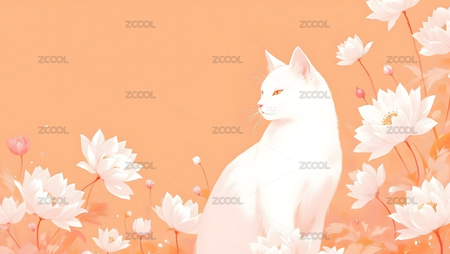 白猫与花卉艺术