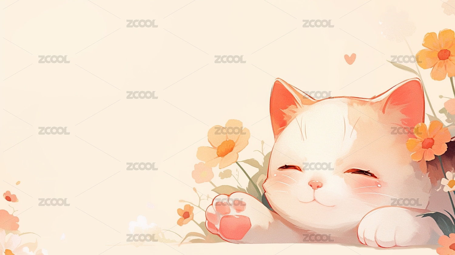 白猫与花朵的温馨画面