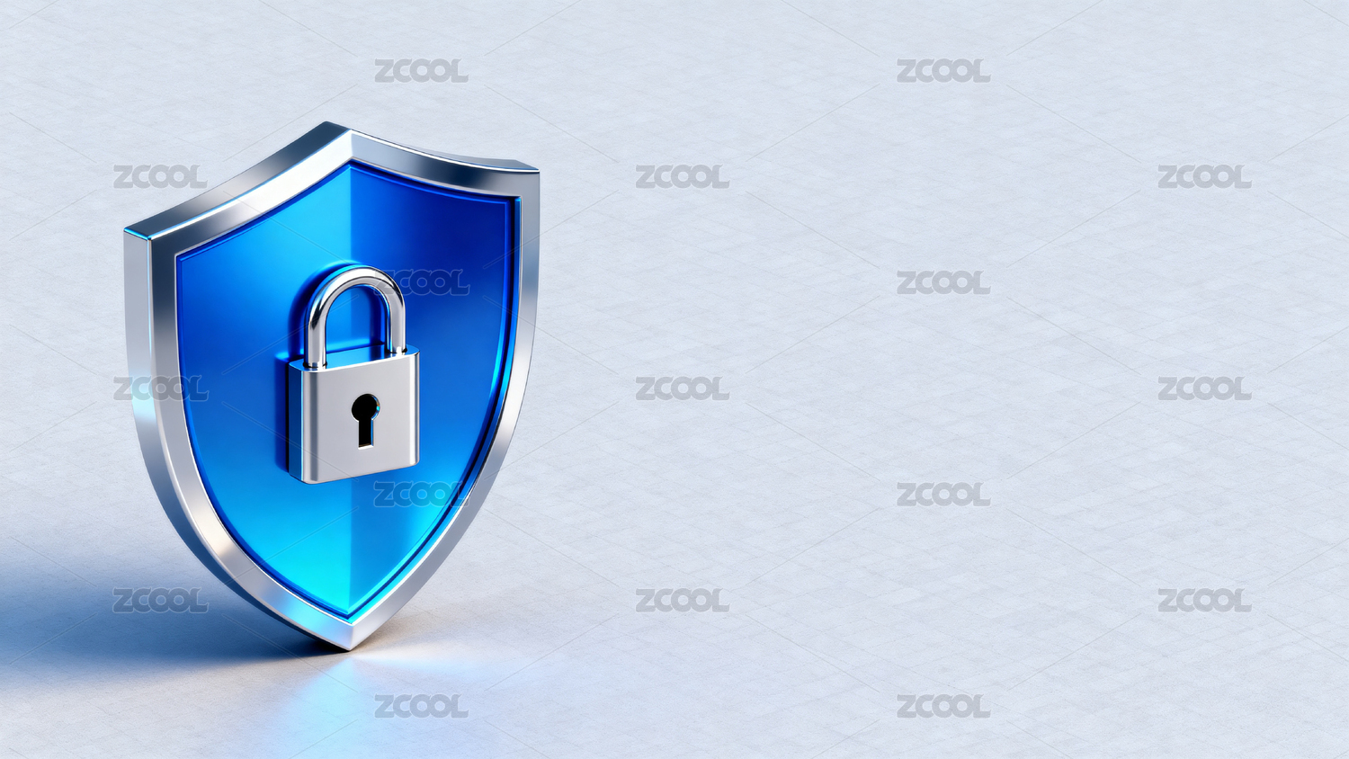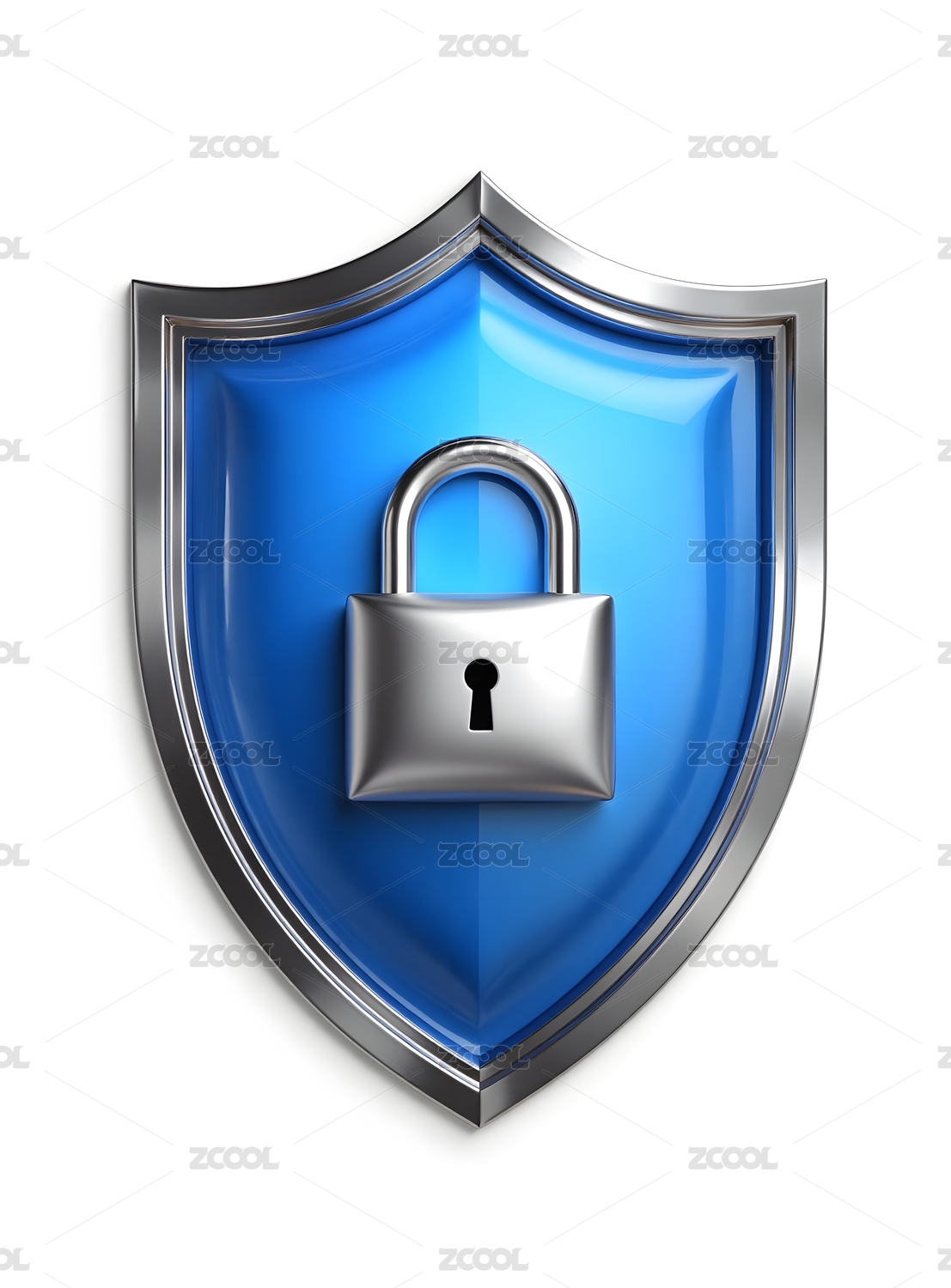 蓝色盾牌配金属锁象征安全防护