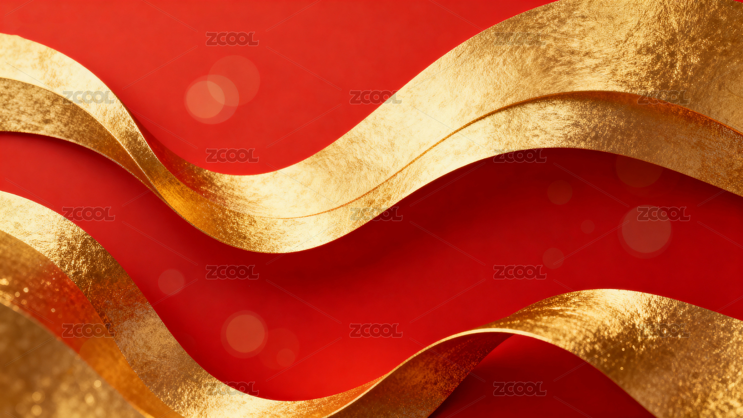 红色背景金色曲线流动图案