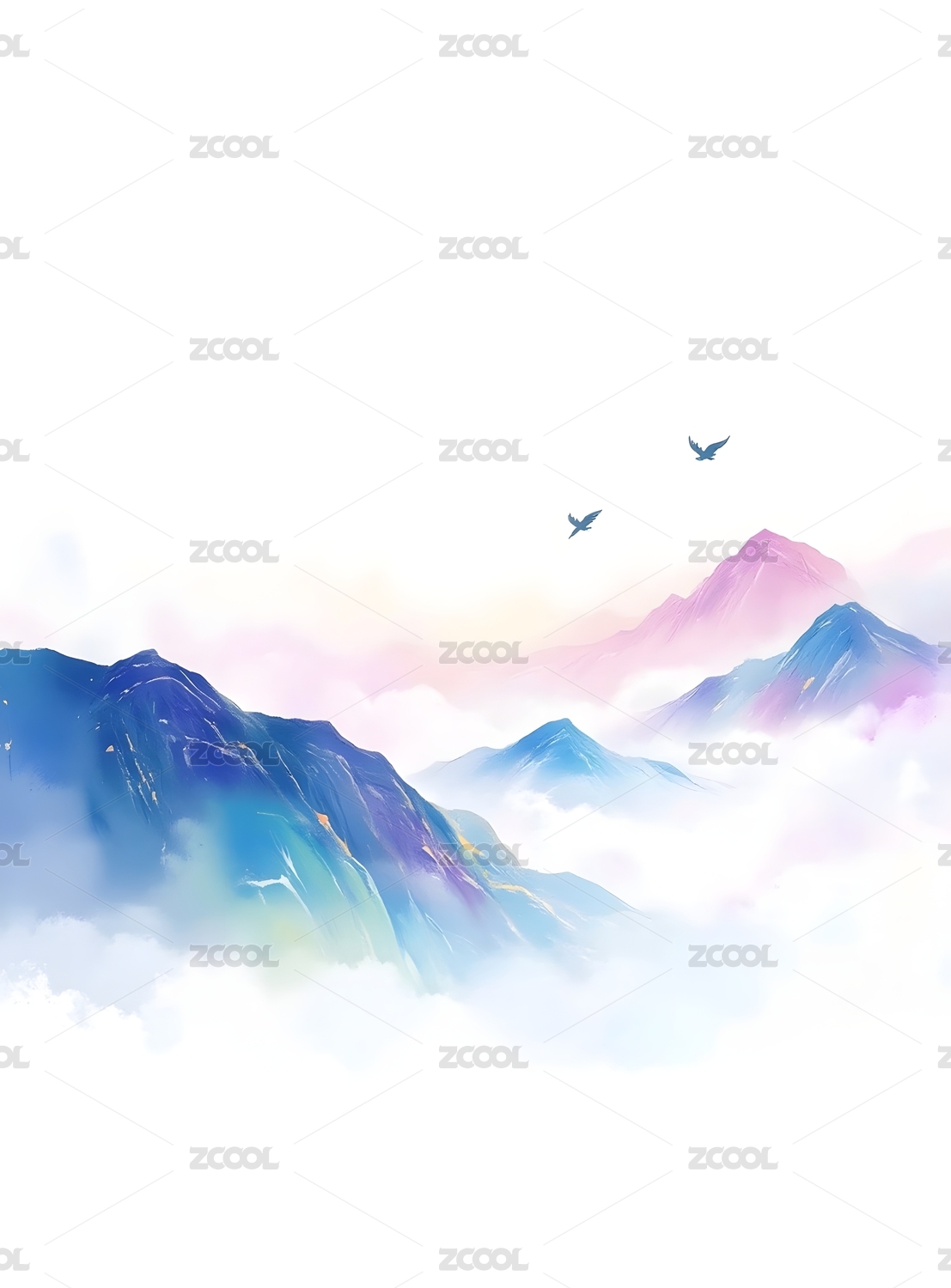 梦幻山水云雾飞鸟景象