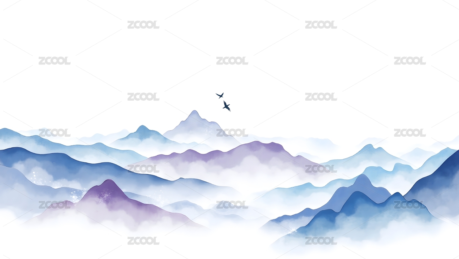 水墨山水画双鸟飞翔