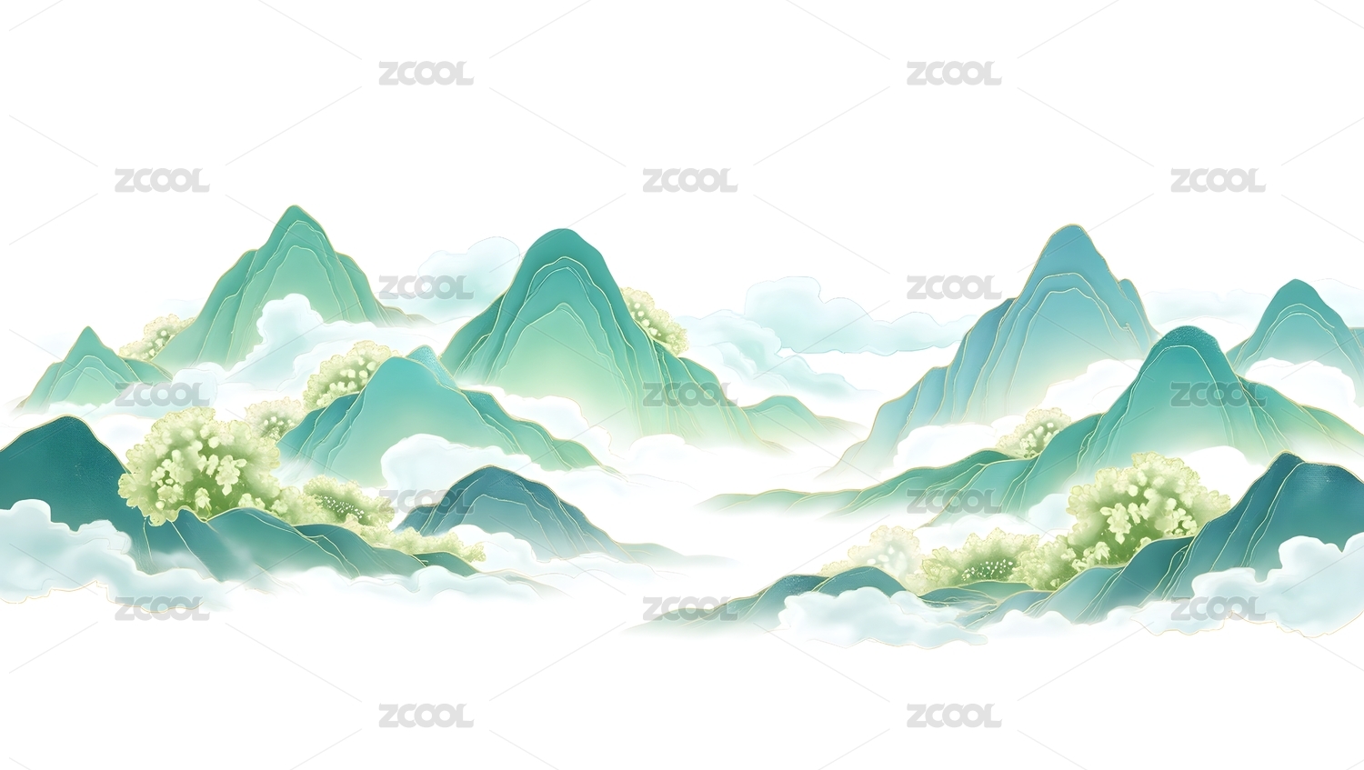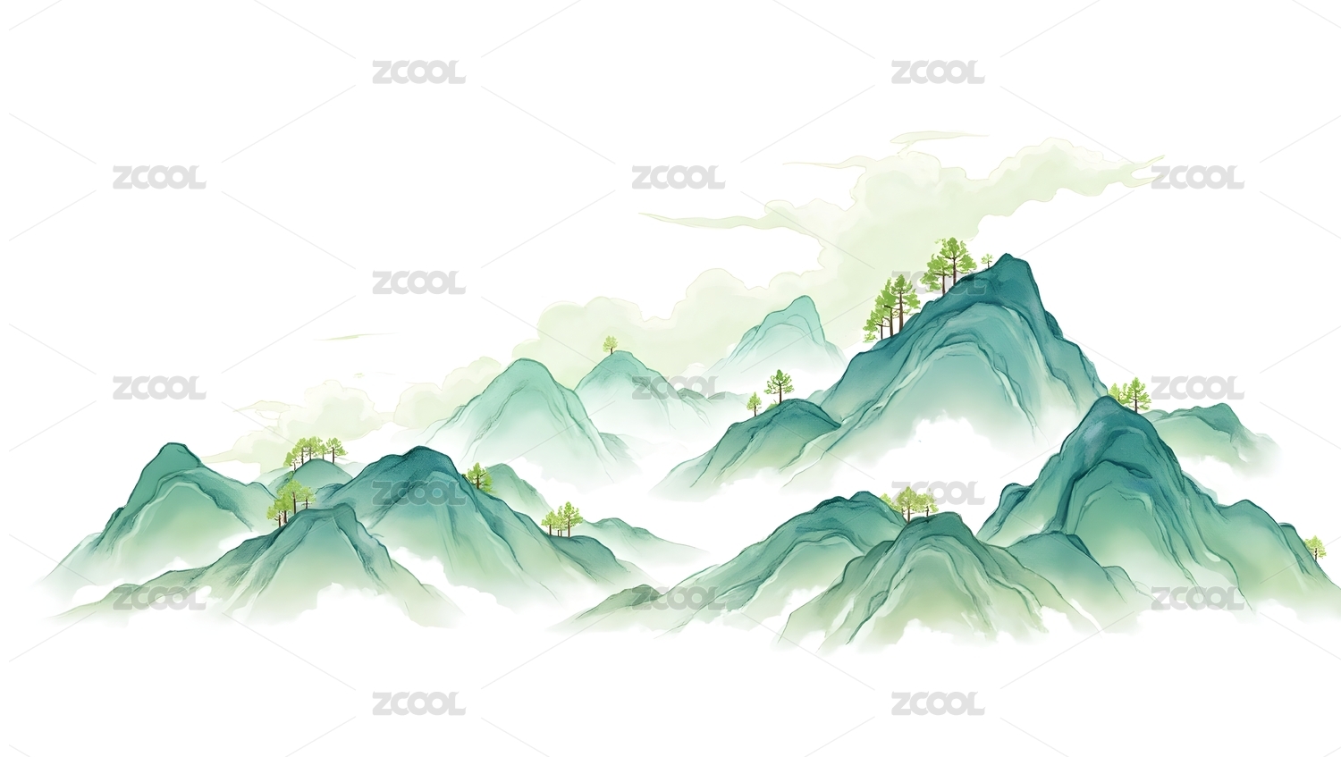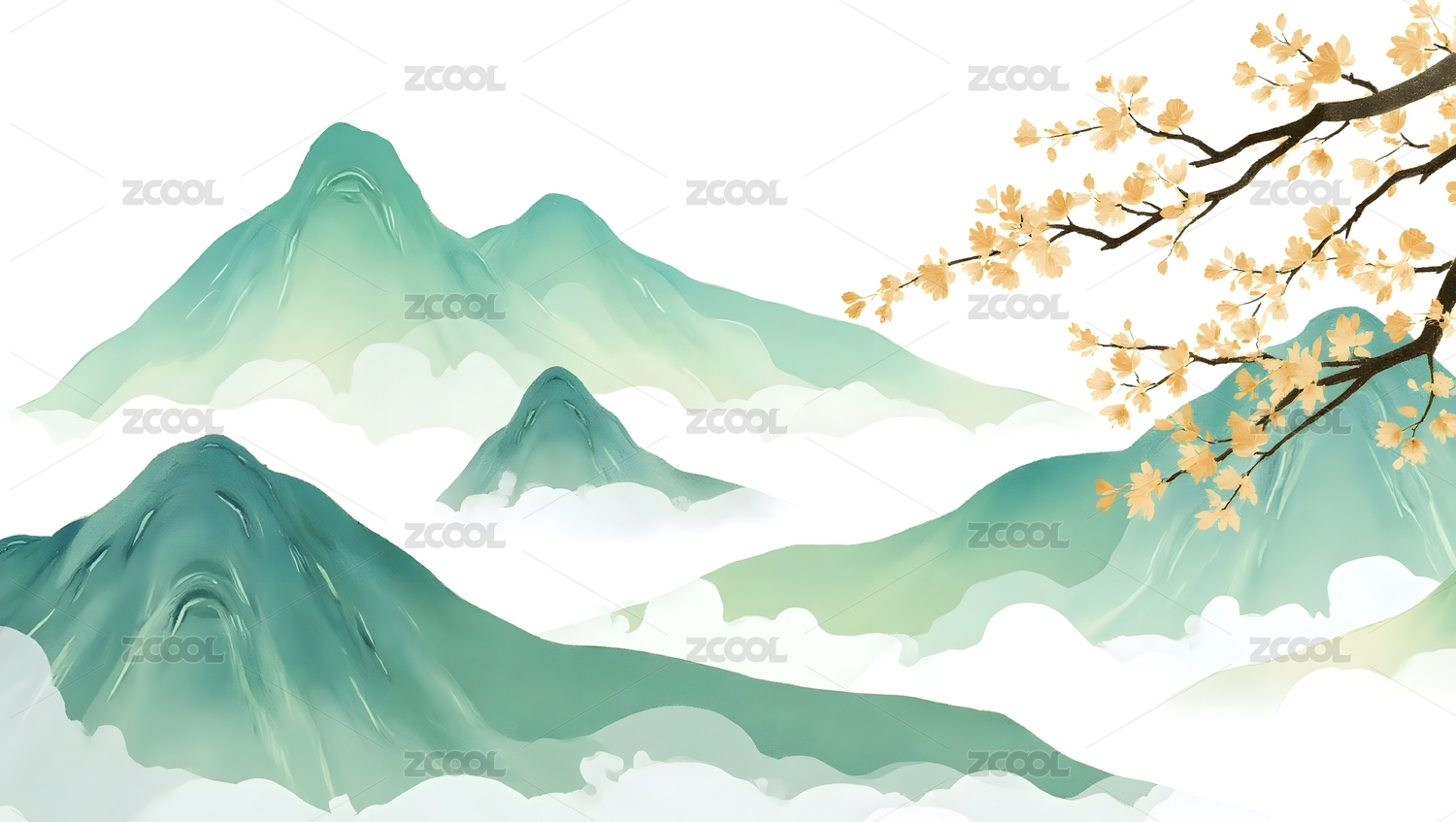 山脉,水墨,绿色,远山,近山,背景,自然,风景,艺术,黄色