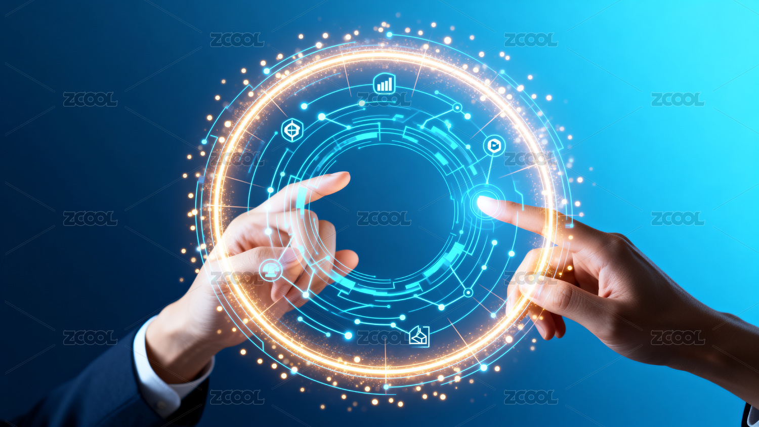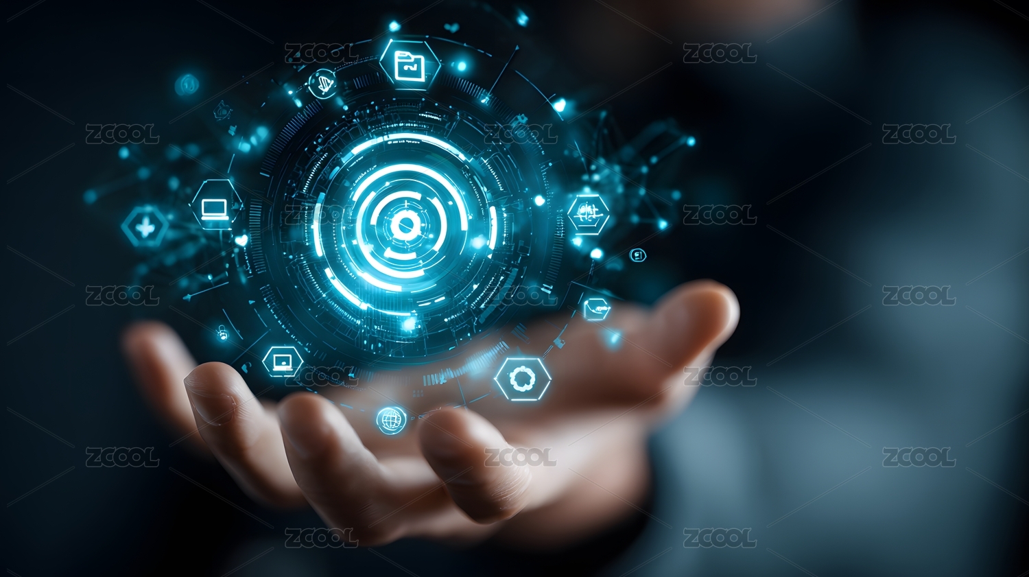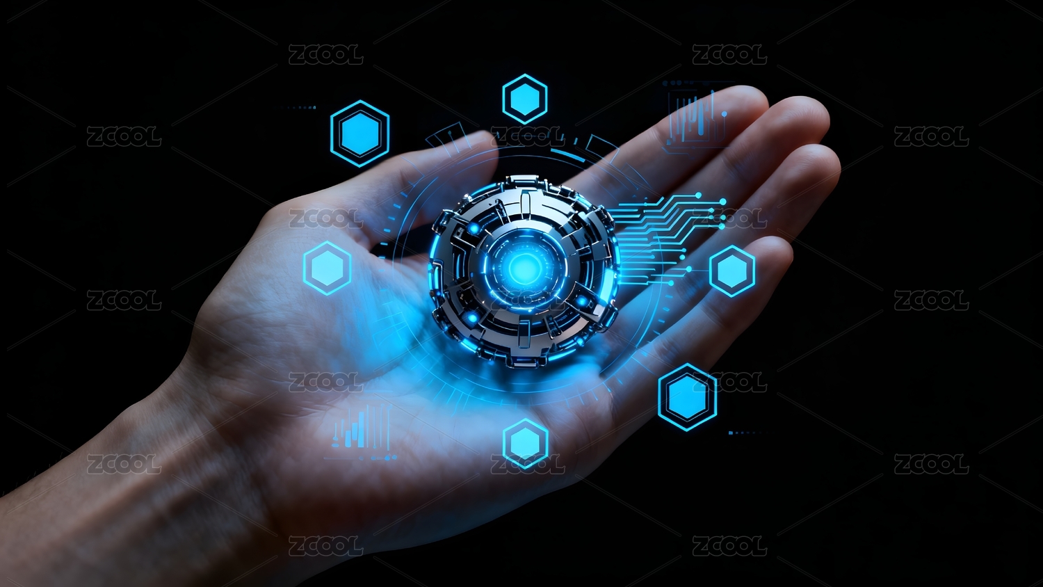 蓝色,图标,图案,科技,数字,圆形,背景,手掌,悬浮,电路