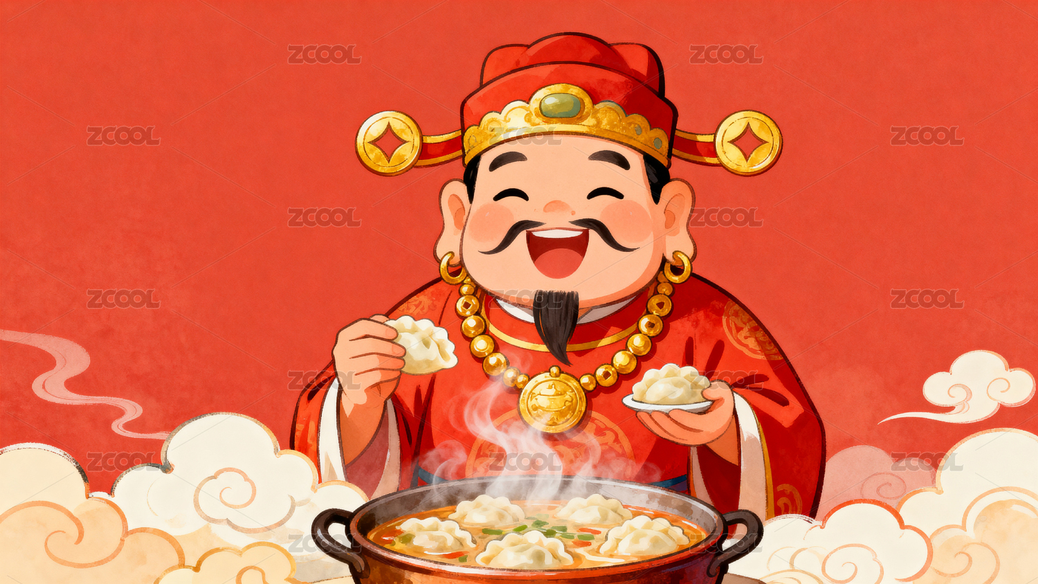 财神爷吃饺子喜庆吉祥