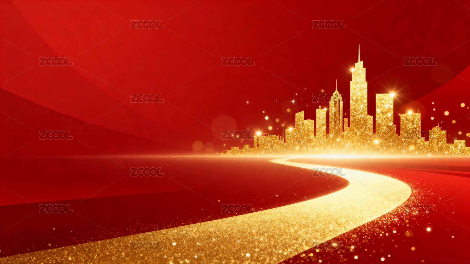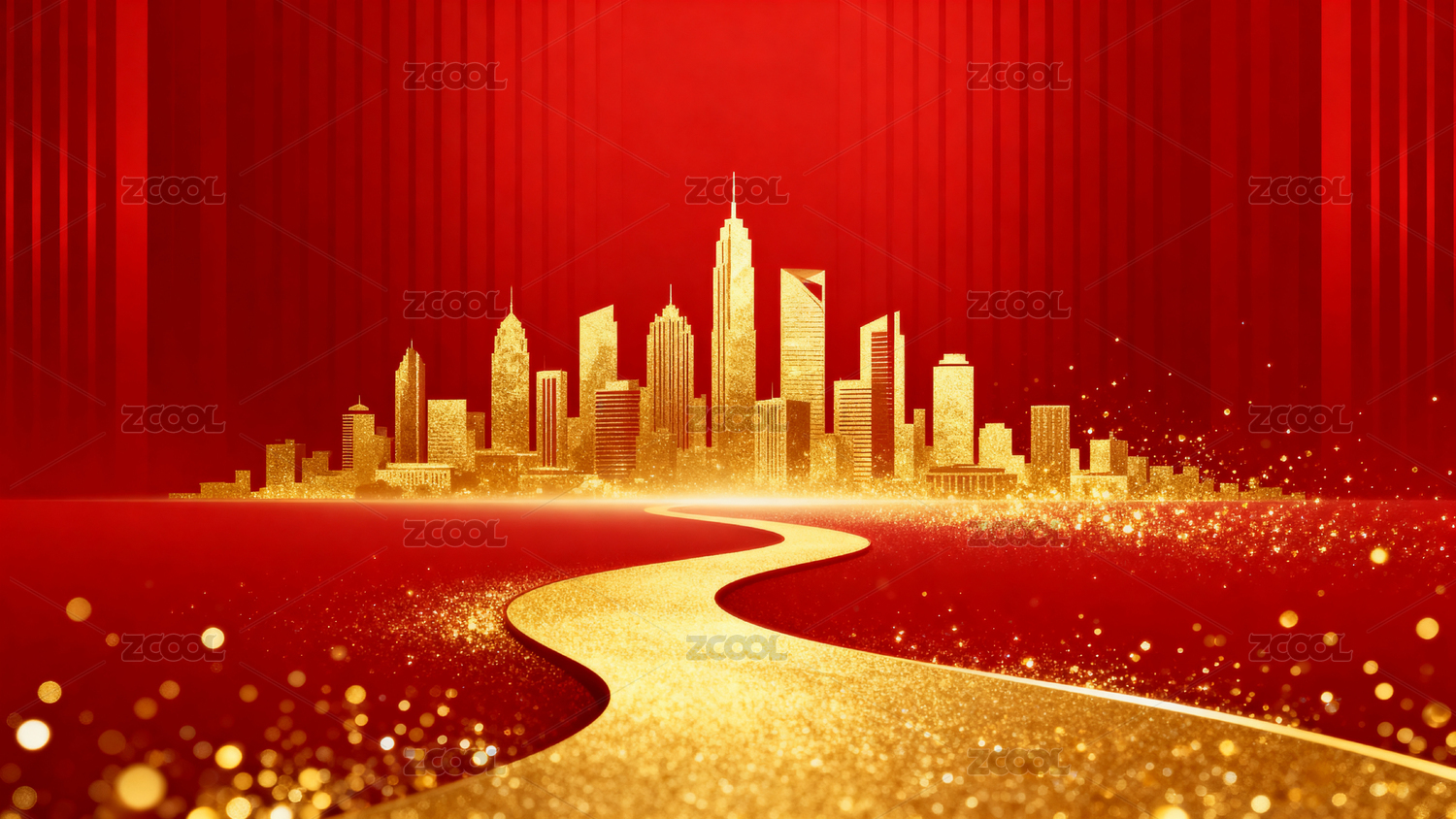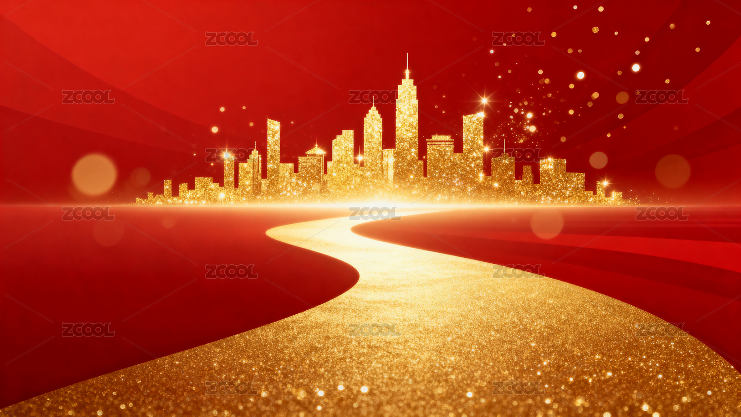 金色城市道路红色背景