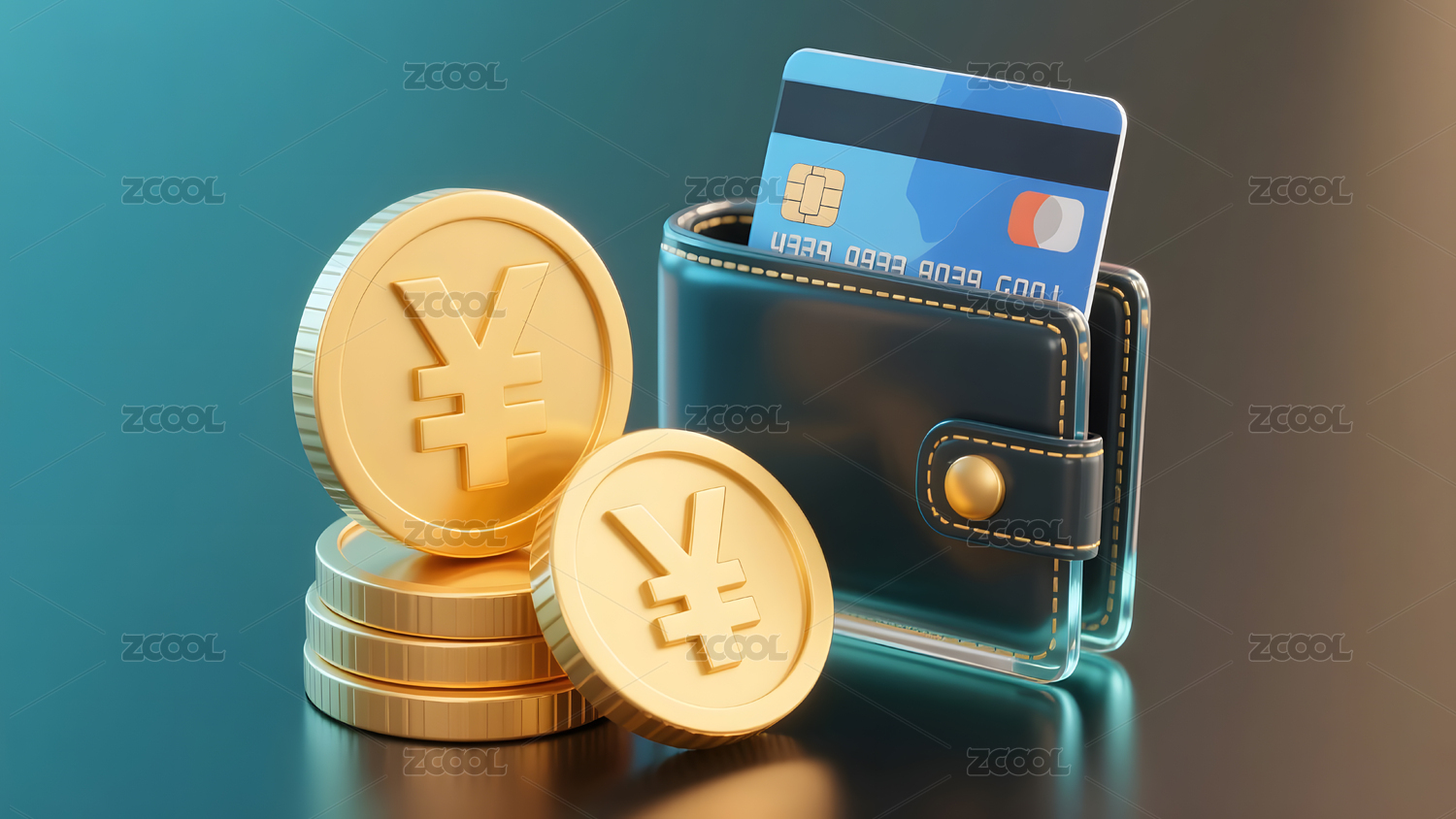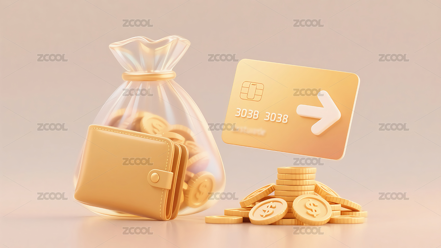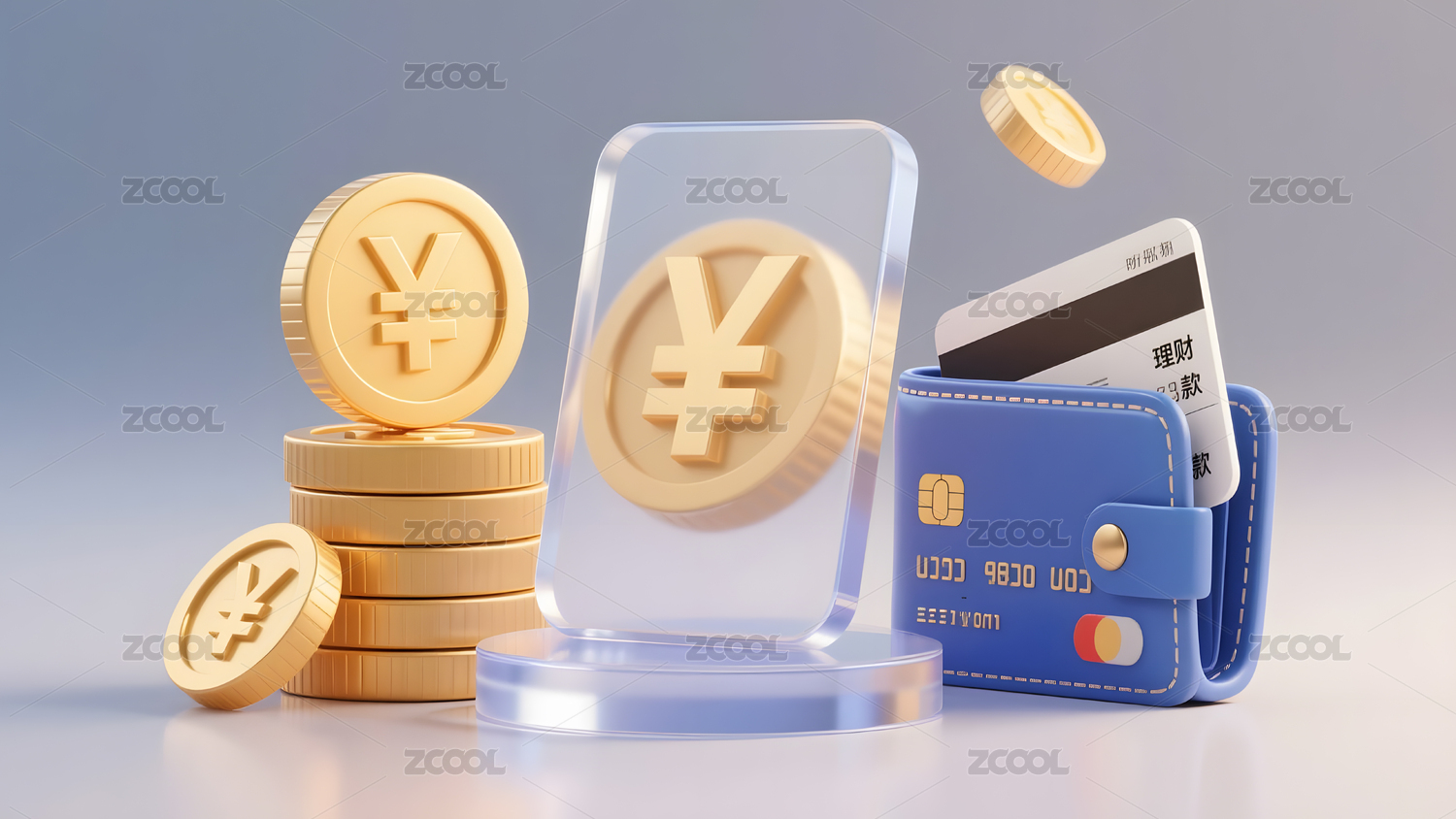 钱包与金币展示金融主题