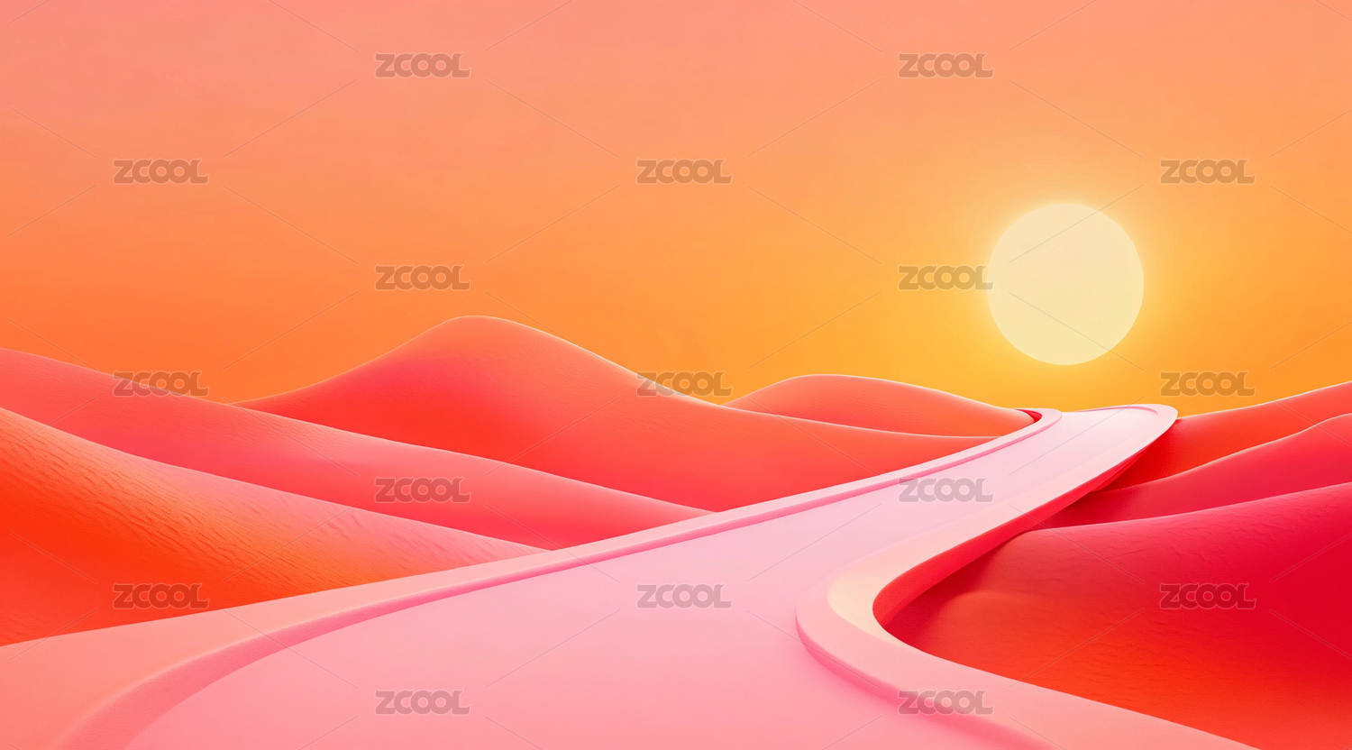 橙红曲面立体场景图