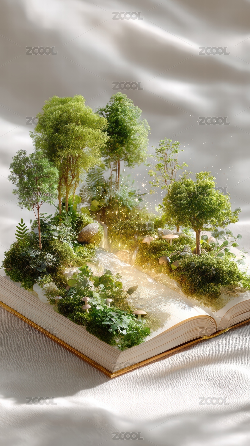 自然,森林,图案,色彩,木质,书籍,书页,桌面,温暖,插画