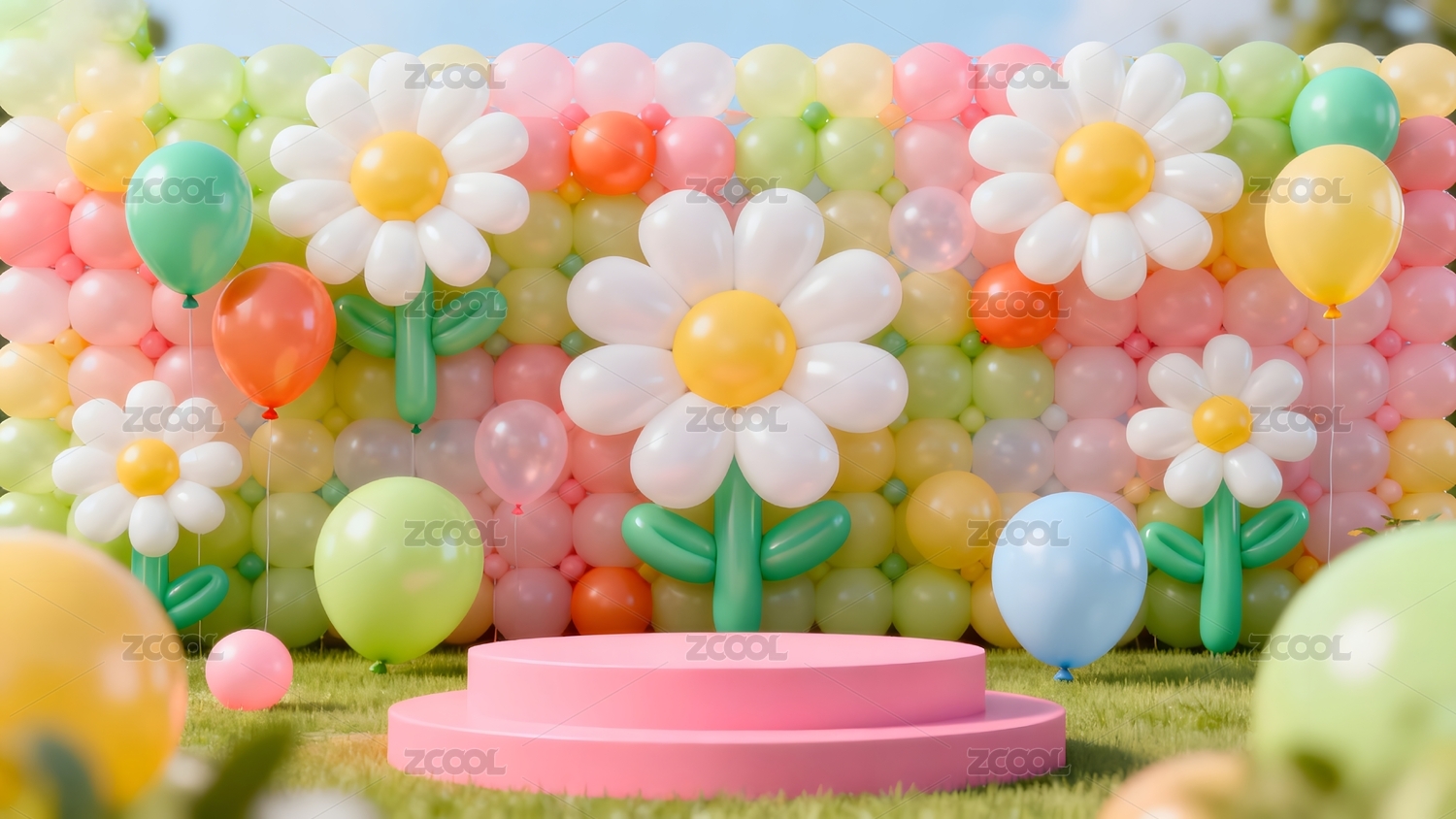气球,花朵,背景,舞台,绿色,粉色,黄色,花茎,花瓣,装饰