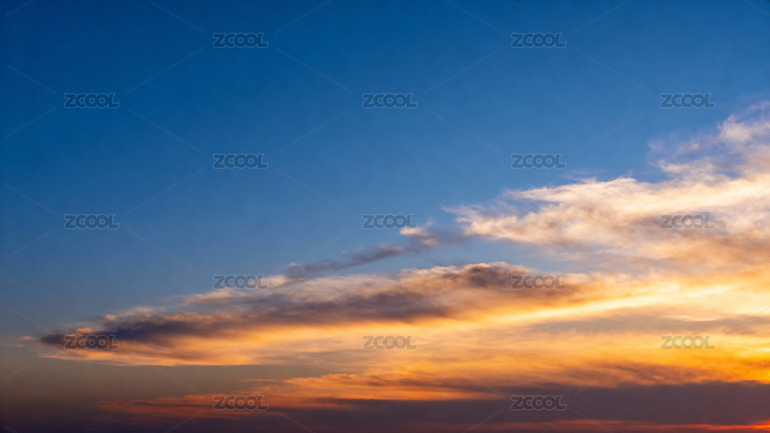 黄昏天空中漂浮的蓝色晚霞彩云自然景观