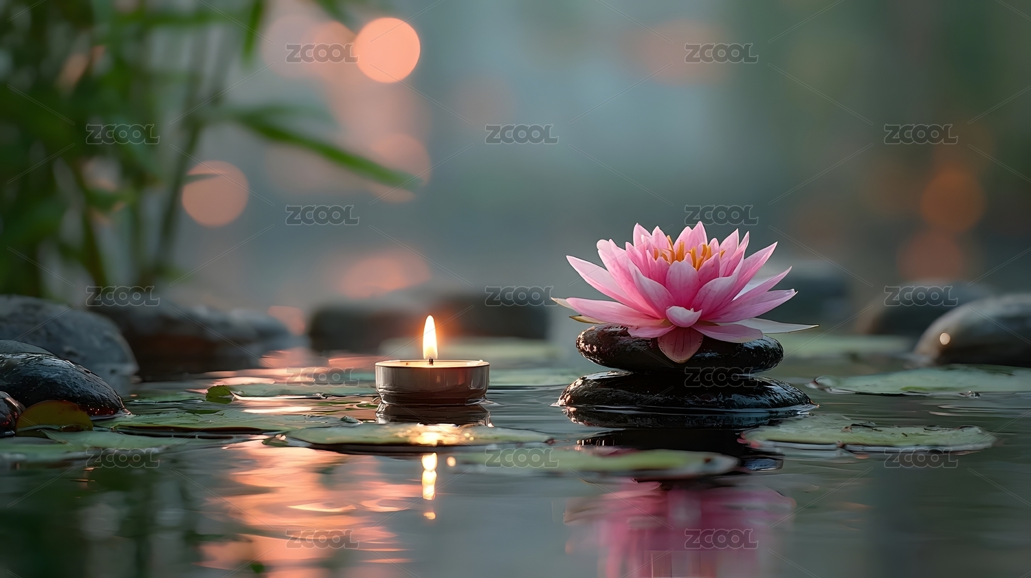 禅意静心荷花与蜡烛