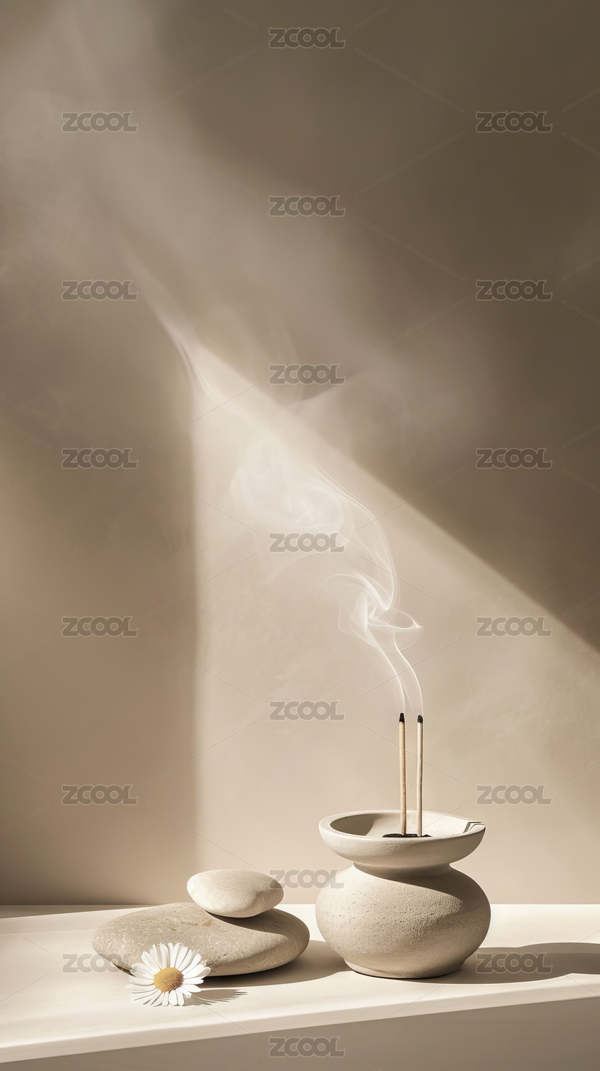 深色,背景,浅色,柔和,静谧,香炉,燃烧,白烟,陶瓷,禅意