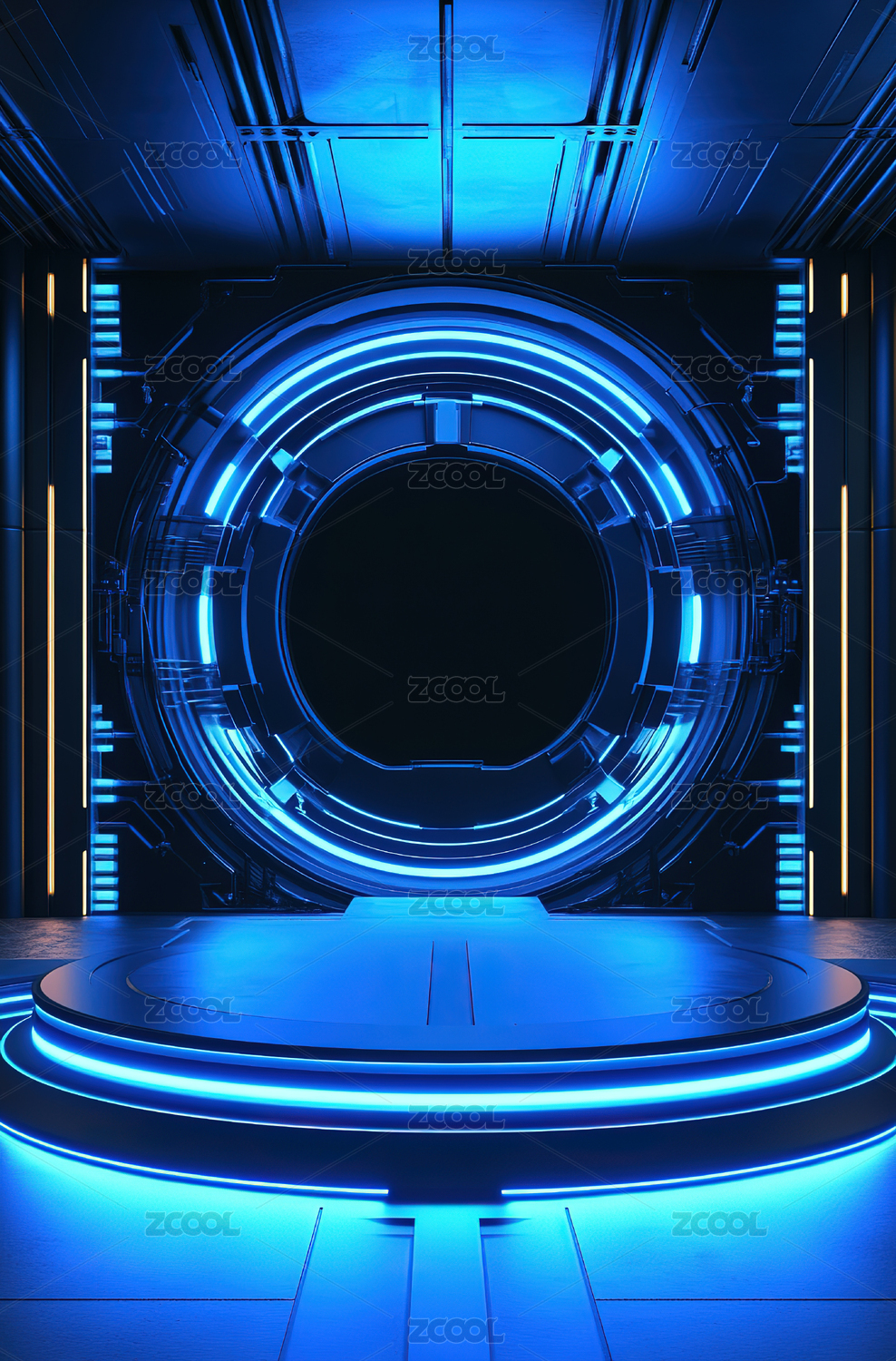 未来科技感的蓝色同心圆通道