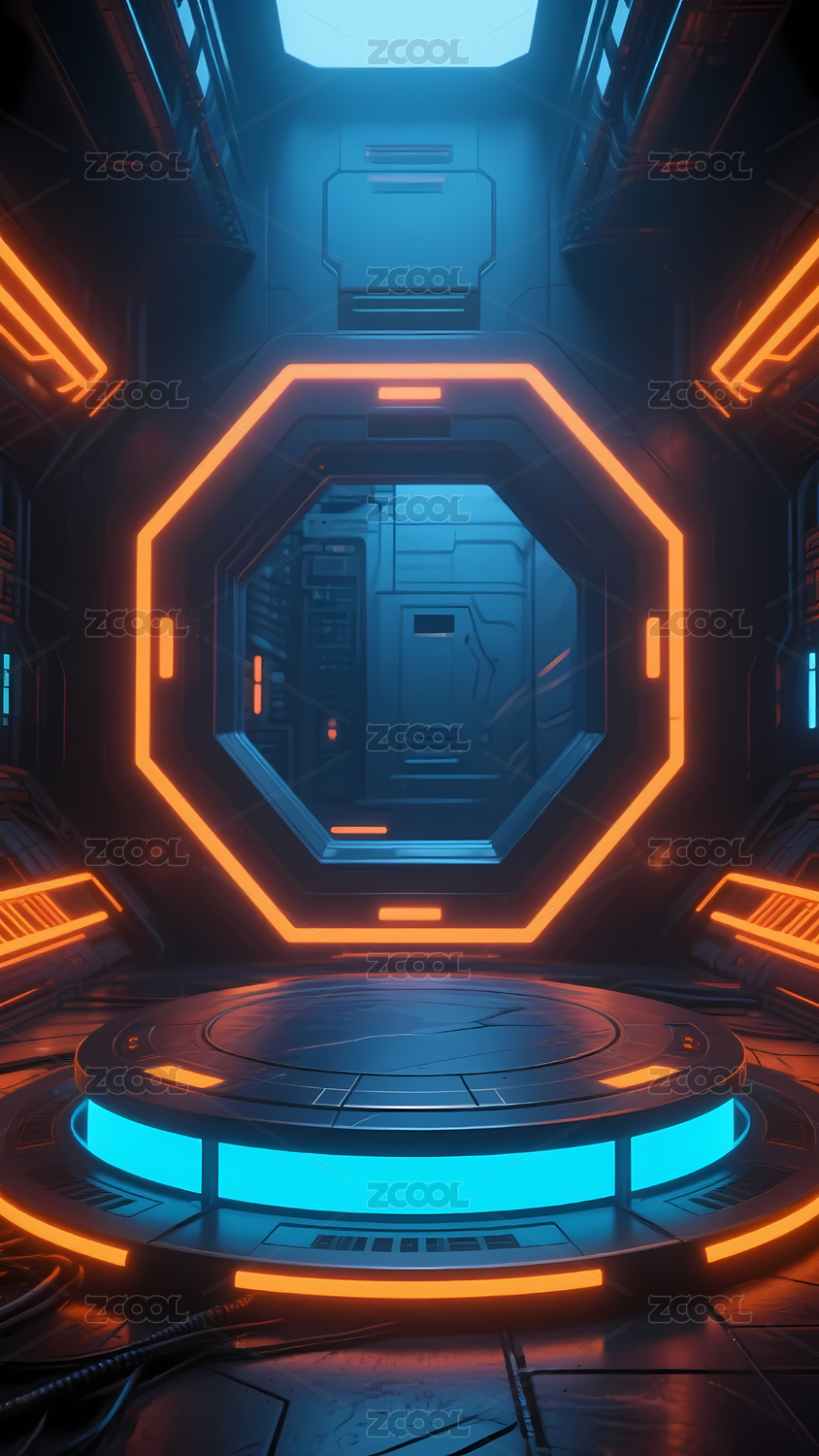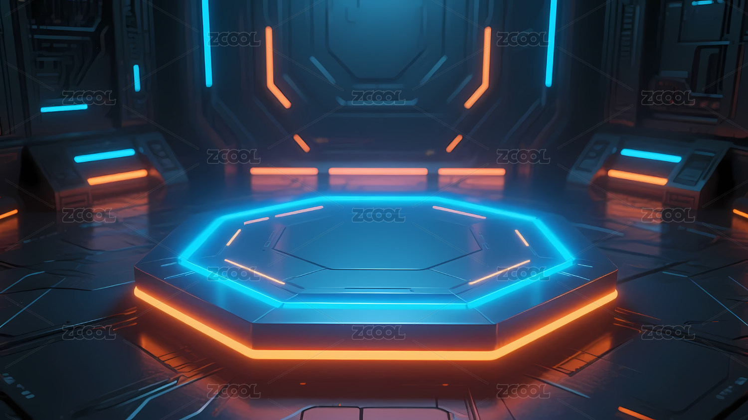 蓝橙霓虹灯八边形平台