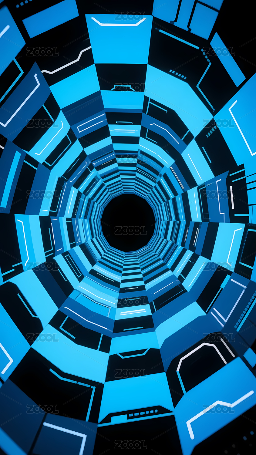 蓝色,背景,深色,科技,隧道,未来,灯光,圆形,光圈,夜景