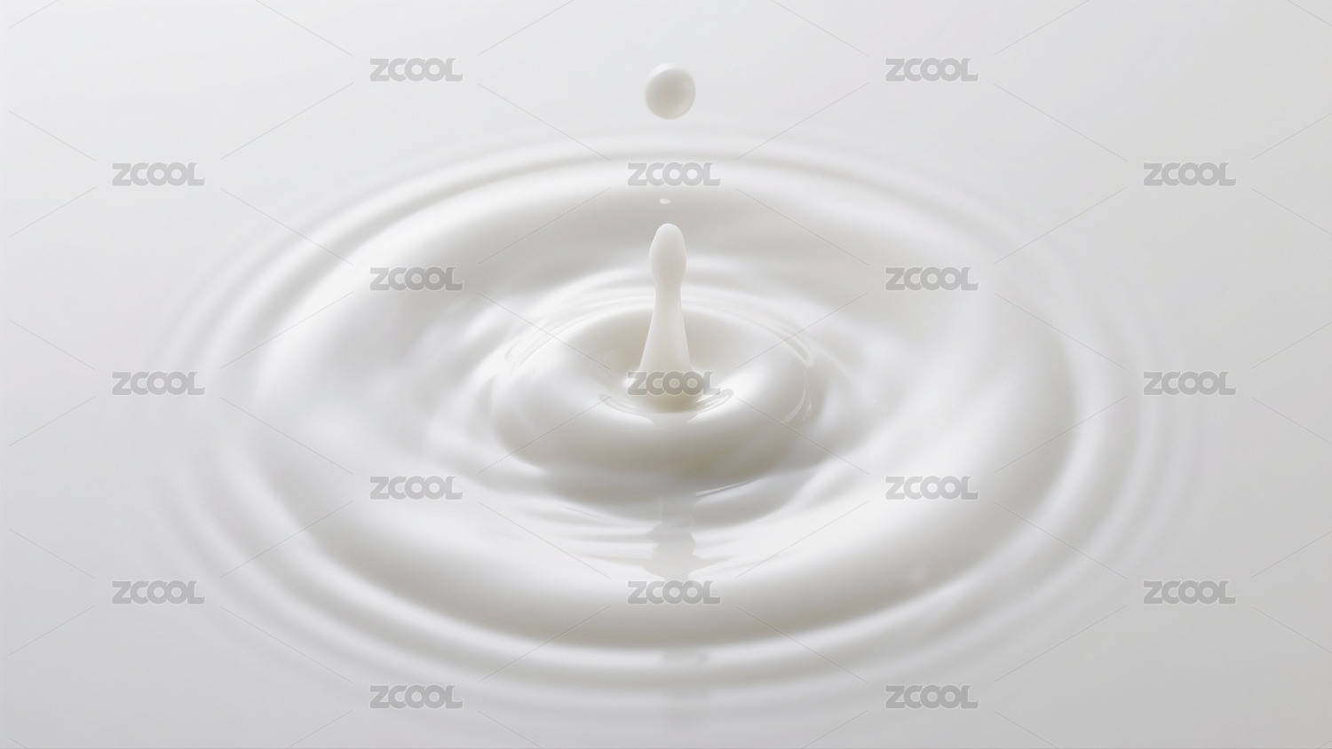 倒牛奶溅起的水珠和波纹,近景,牛奶饮品广