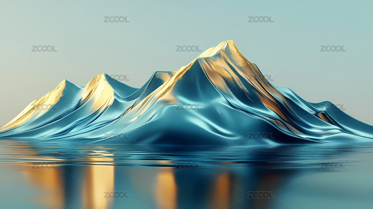 金色,波浪,山脉,蓝色,湖面,倒影,抽象,水面,波纹,远山