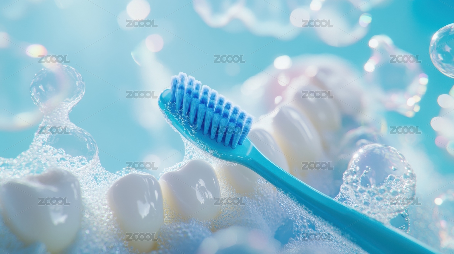 牙刷泡泡背景3D渲染