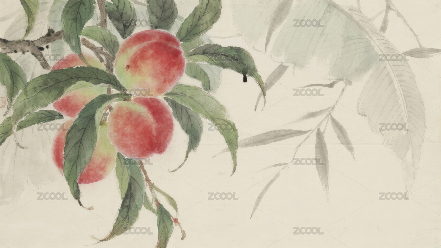 桃子,枝头,展现,丰收,自然,桌面,背景,果实,叶片,绿色