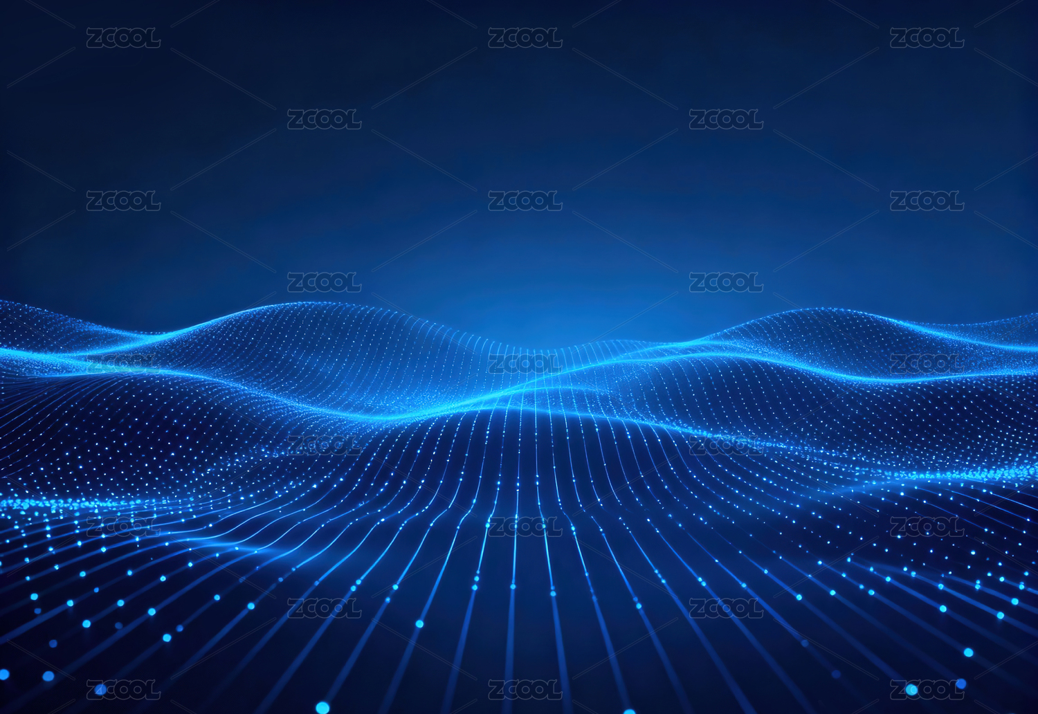 蓝色粒子波浪背景图