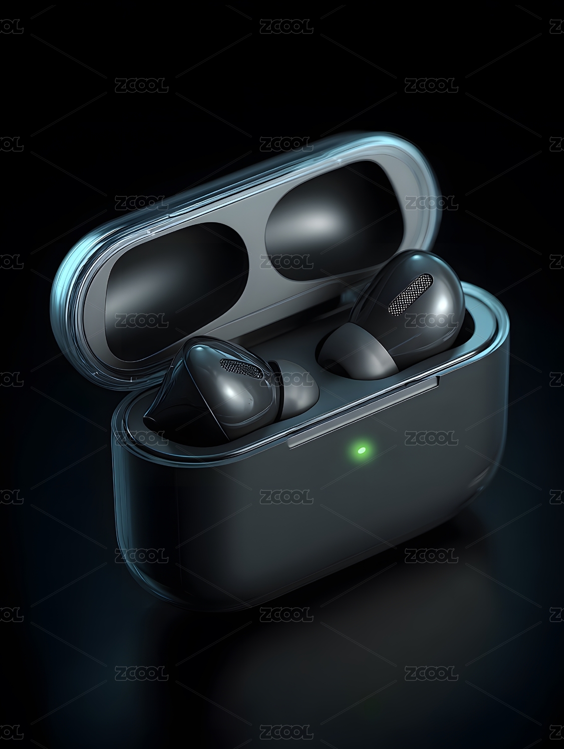 黑色耳机充电盒 黑科技氛围