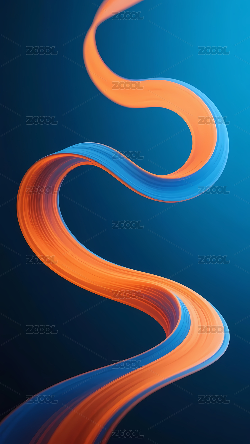 抽象蓝色橙色波浪线条